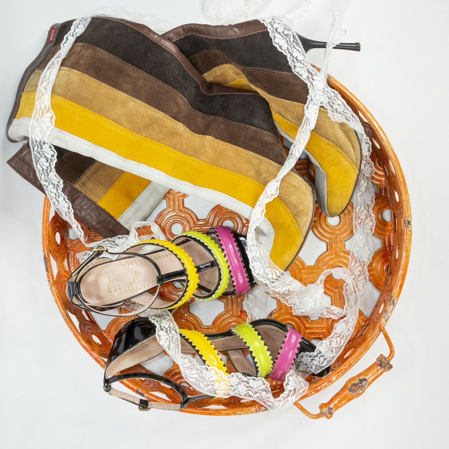 Bared Snakeskin Embossed Tan & Cream Lace Ups - EU37