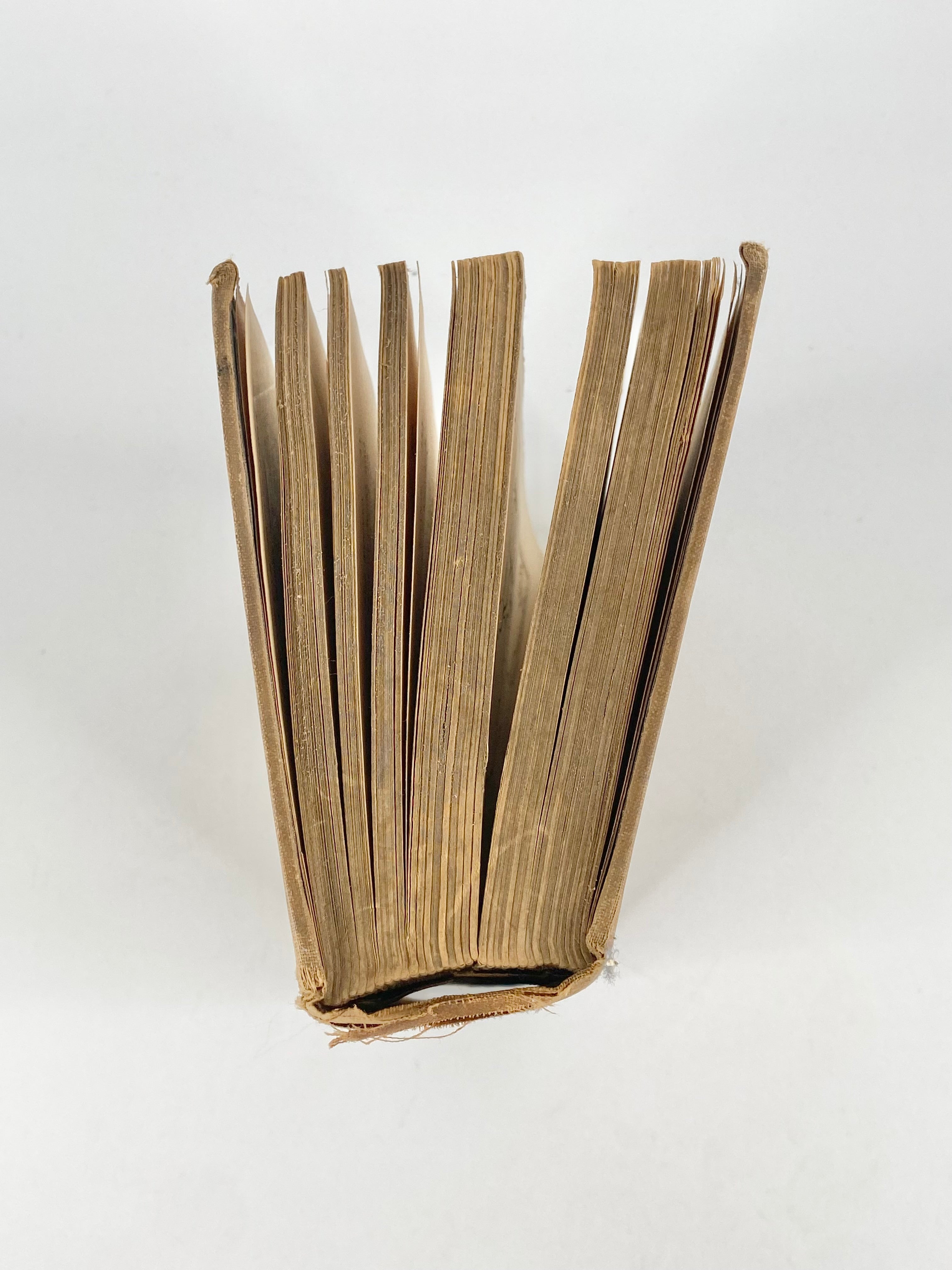 A 1900 published book by Winston Spencer Churchill. As expected with a book of this age, it has significant wear. A fabric cover is bereft of dust jacket, and some has marks across the surface and holes in the surface, especially at the corners of the spine along with coloured pages with age spots.