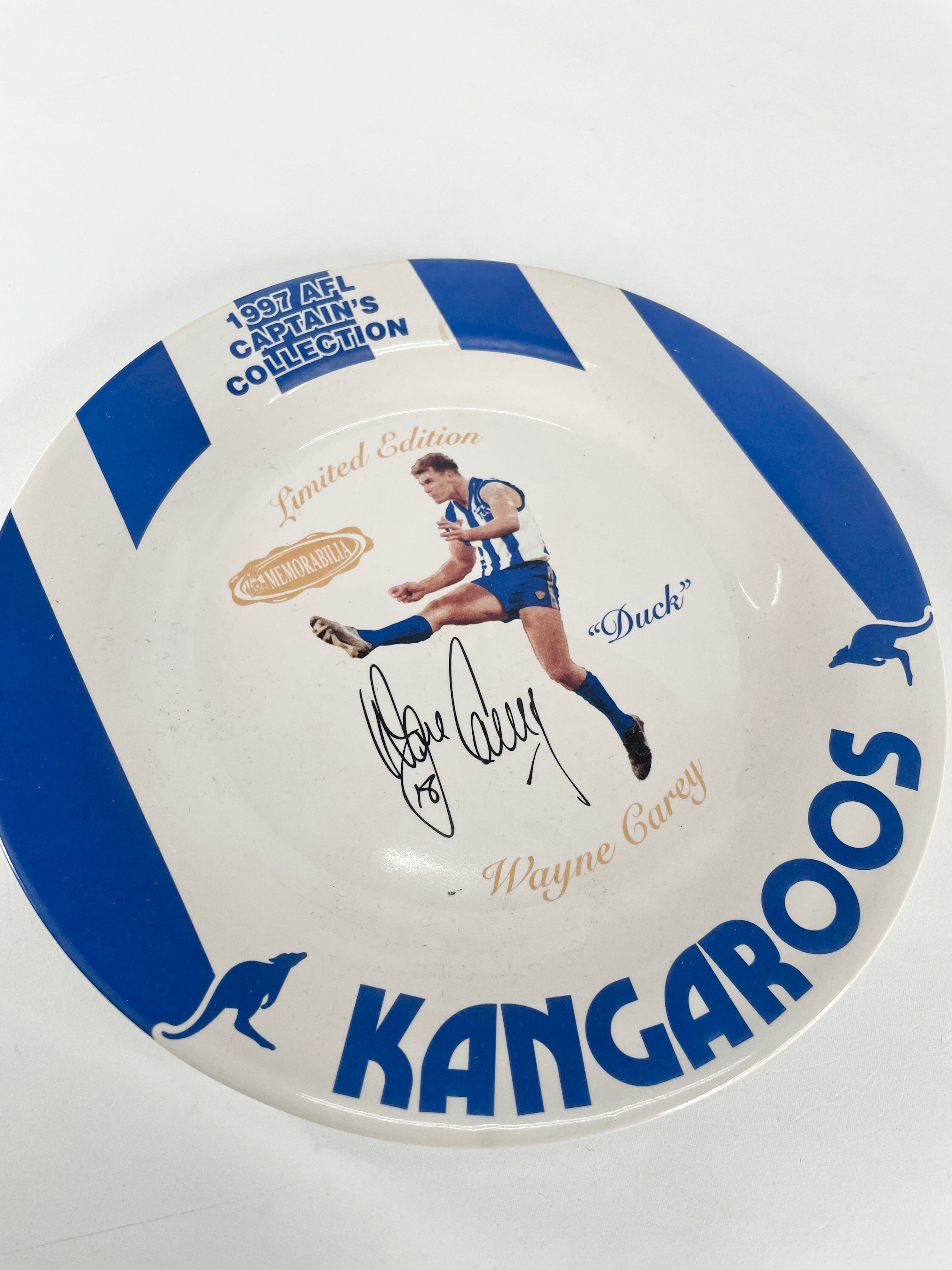 A commemorative and collectable plate from the 1997 AFL Captain's Collection. This one featuring Kangas legend Wayne Carey. It is in excellent condition overall, with some superficial box damage - as well as wear and tear. The plate itself is fine and is stamped #946 of the 1500 produced. A certificate of authenticity is included too.