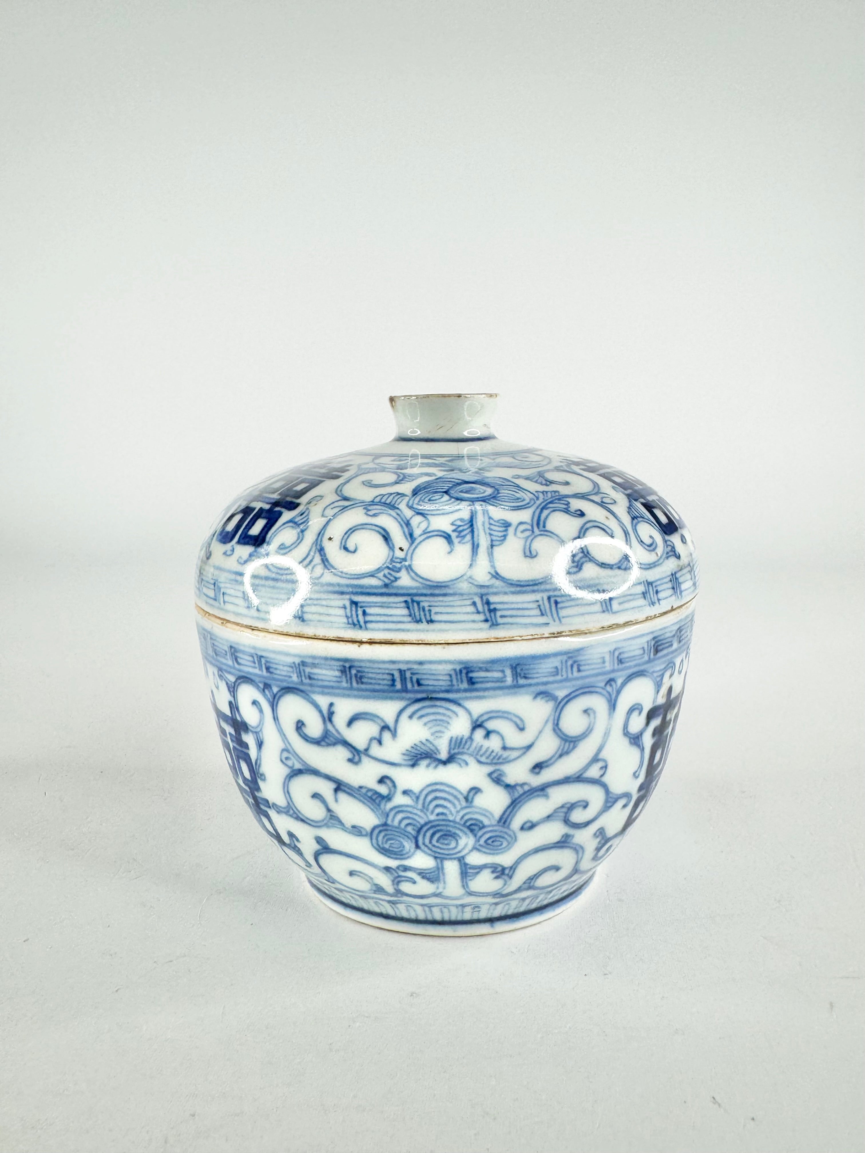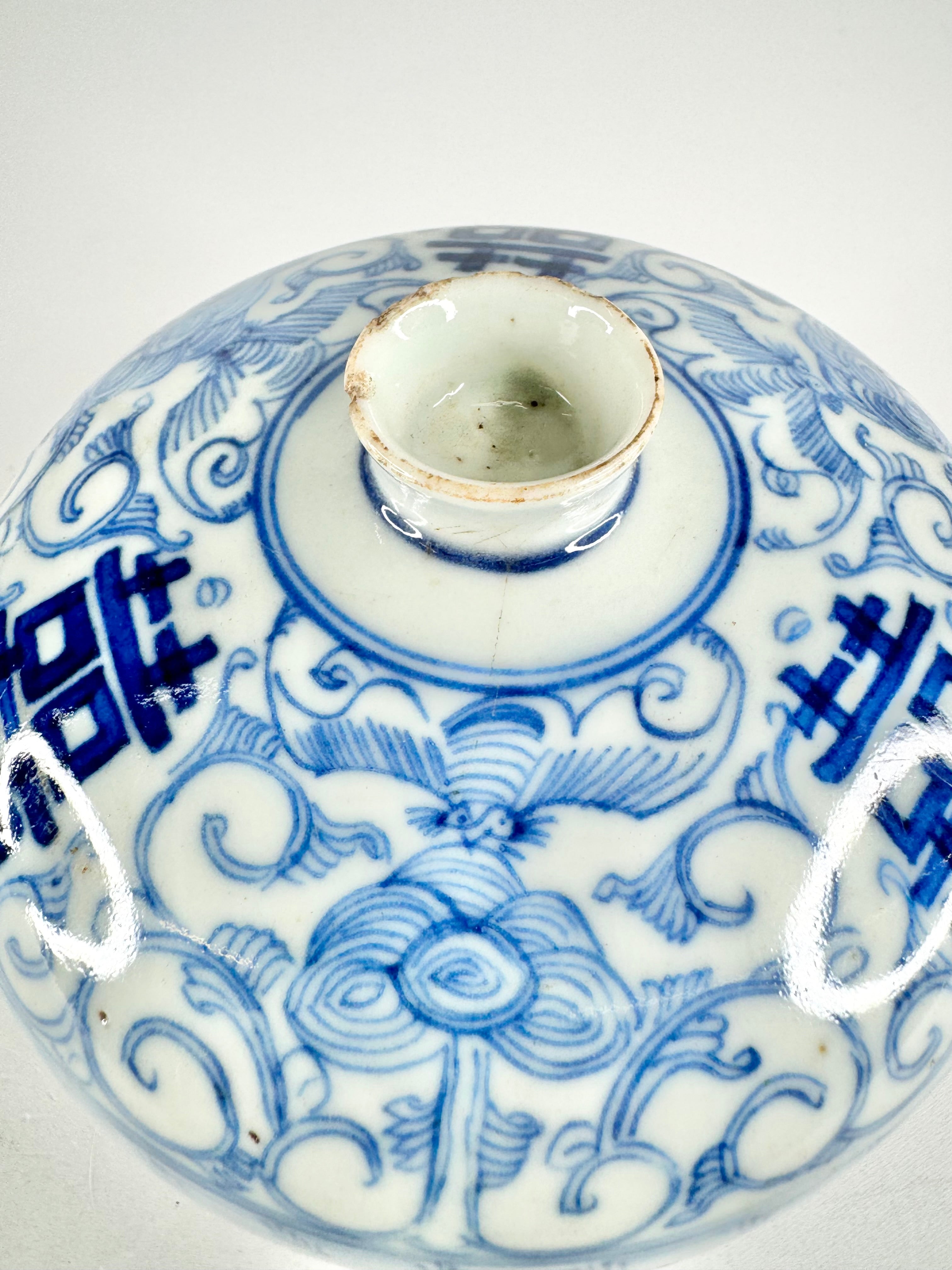 Antique 'Double Happiness' Small Blue & White Porcelain Lidded Dish