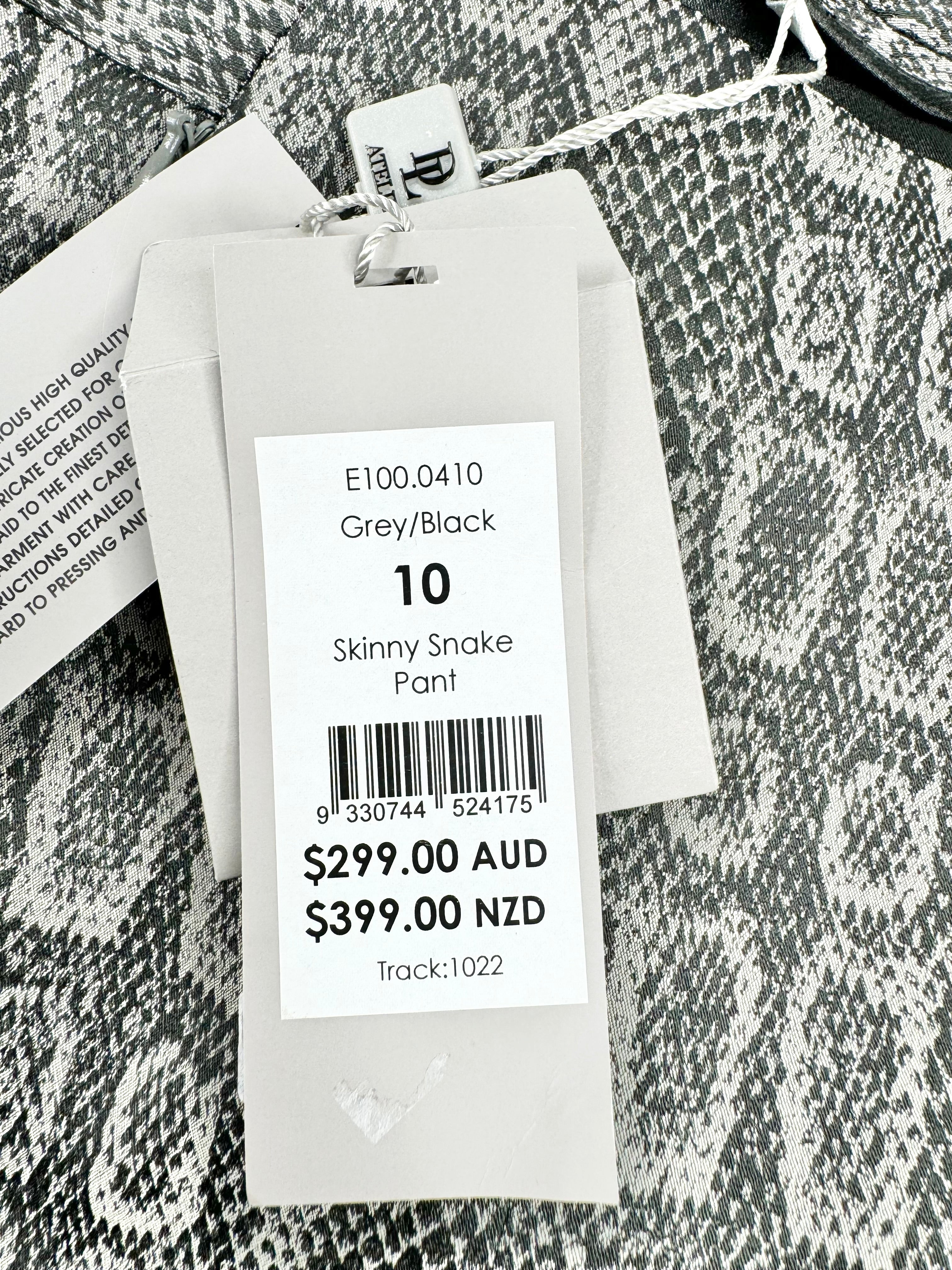 DL Atelier Grey Skinny Snake Slacks NWT - AU10