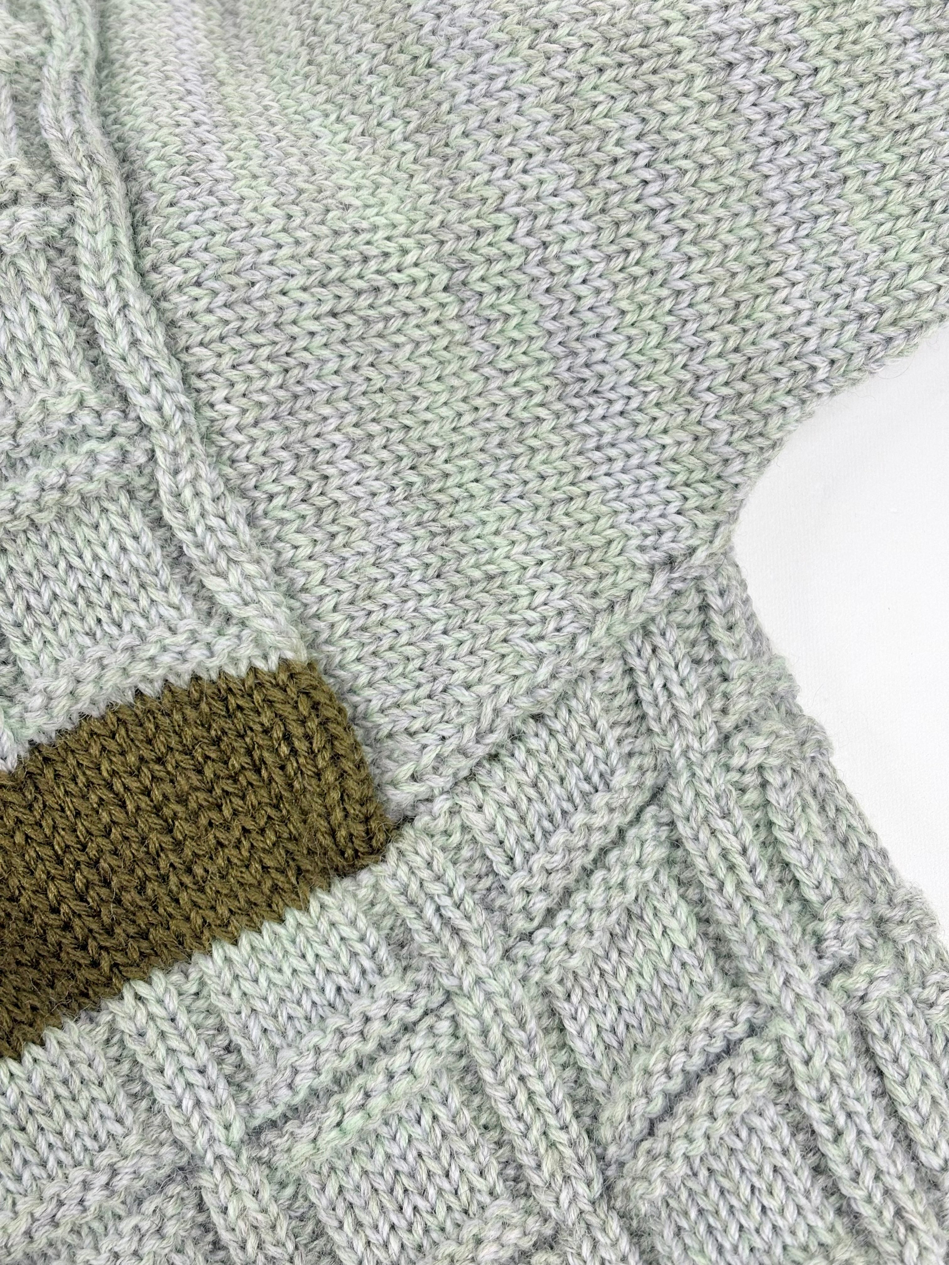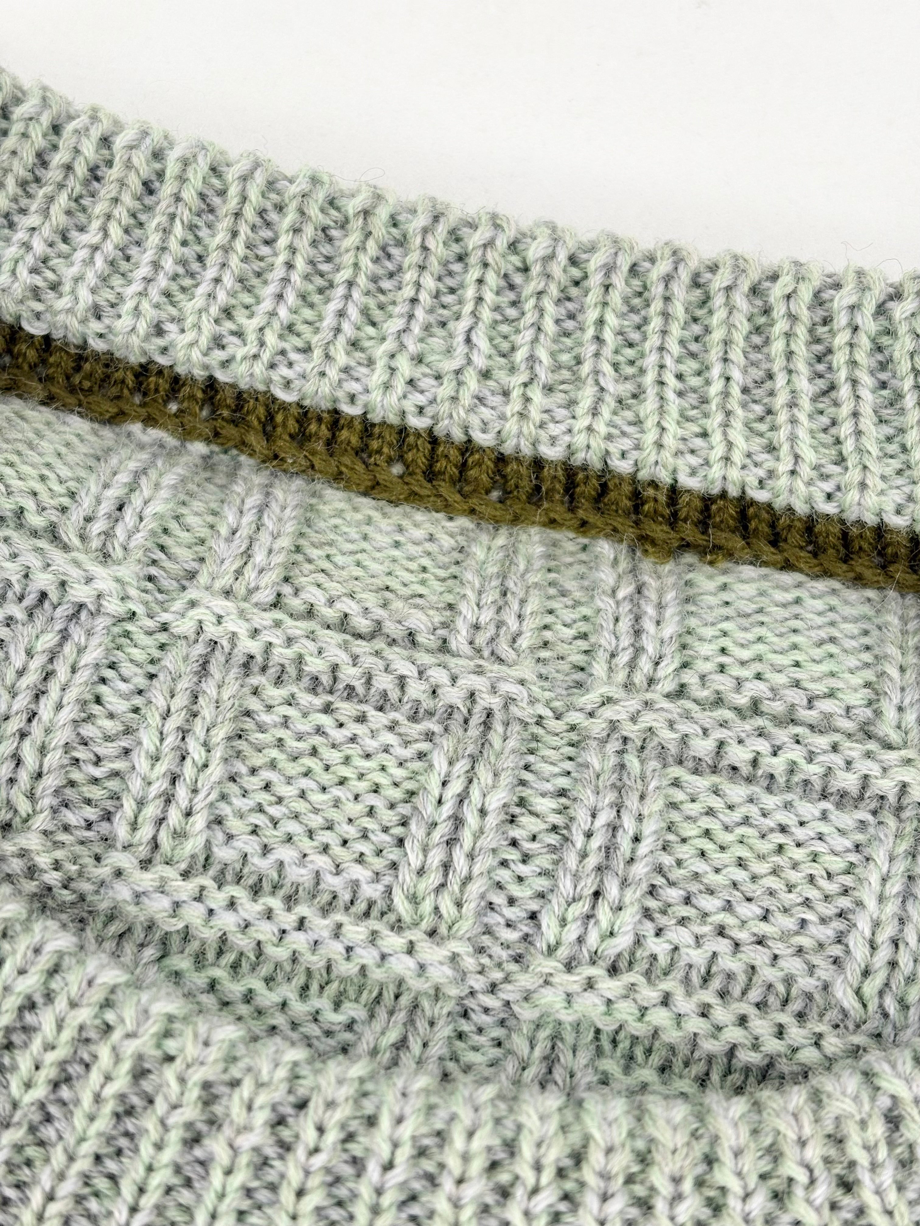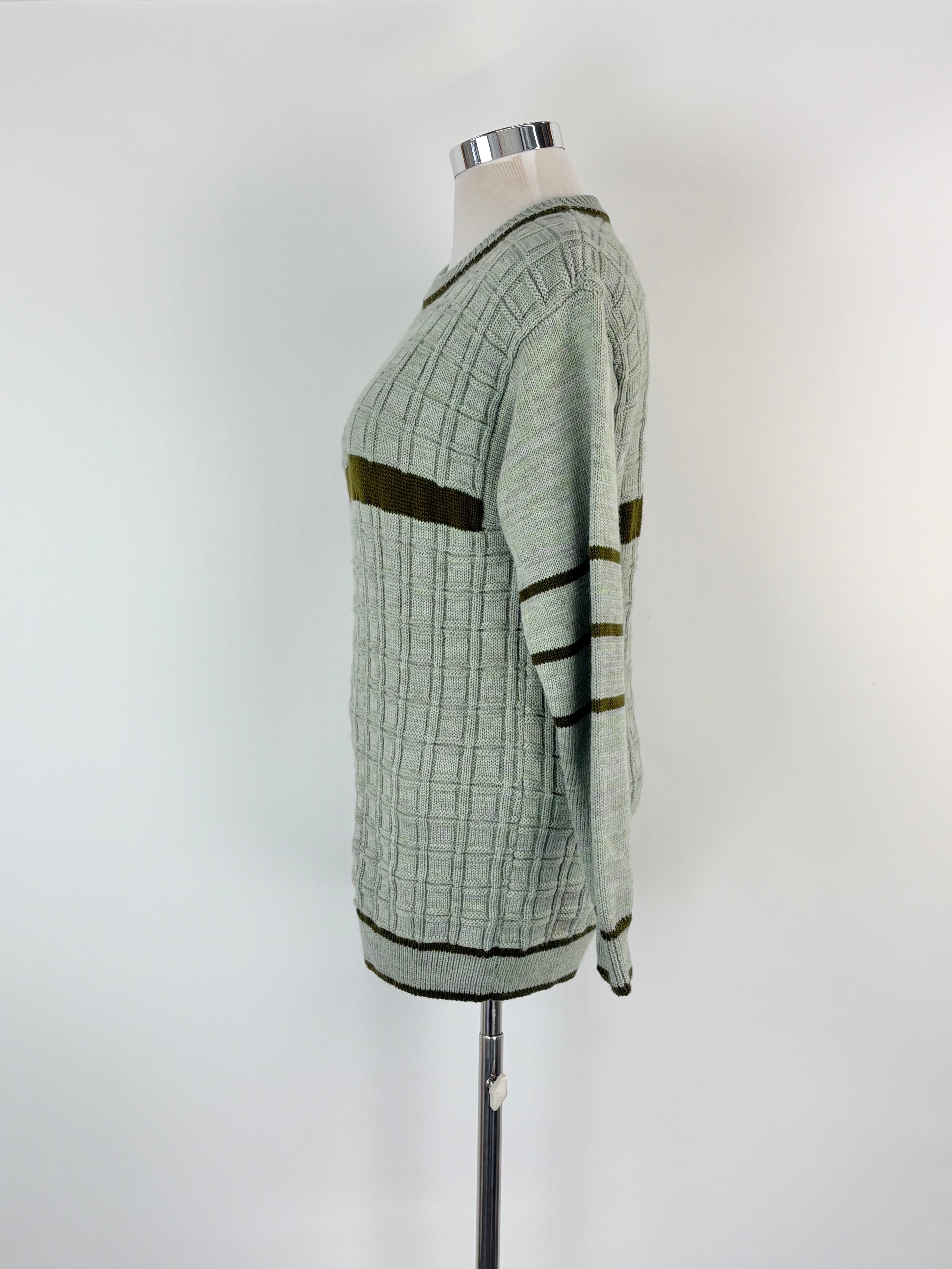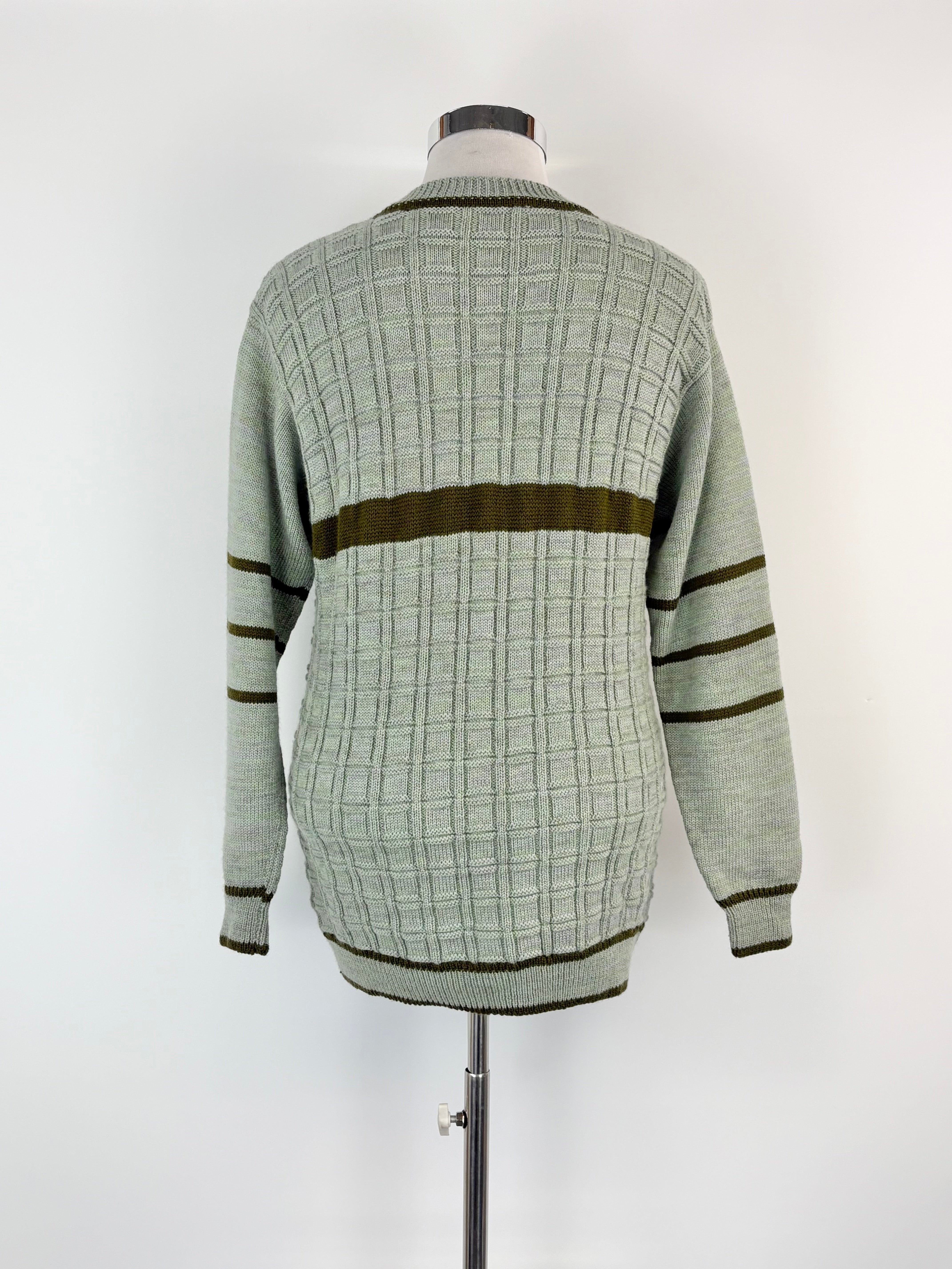 Hand-Made Wool Knit Sage Striped Sweater - AU12