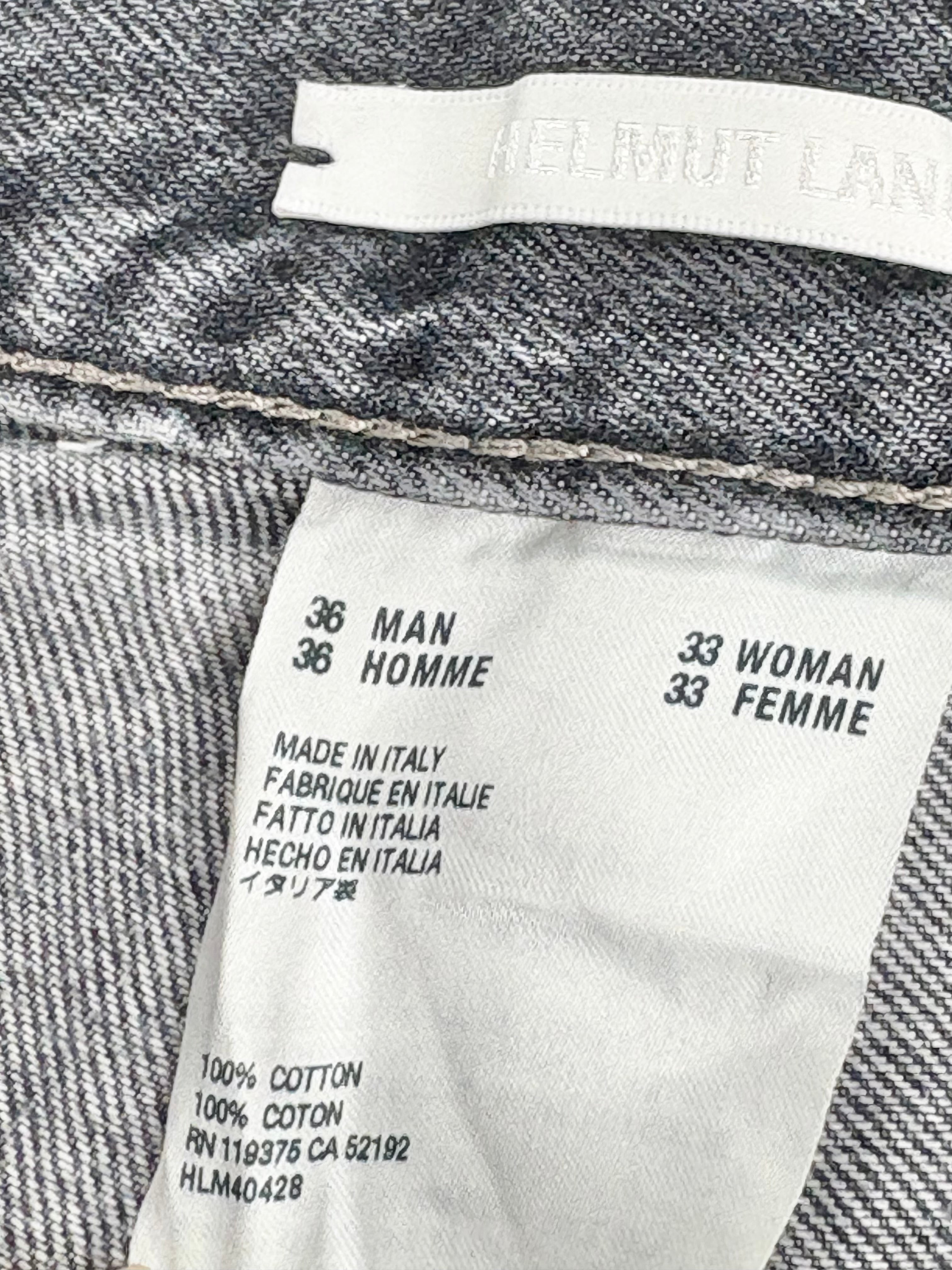 A very washed dark blue on these straight-leg, quality denim jeans from Helmut Lang. Featuring a button-fly and silver-toned hardware, these jeans present in excellent condition overall with minimal wear.