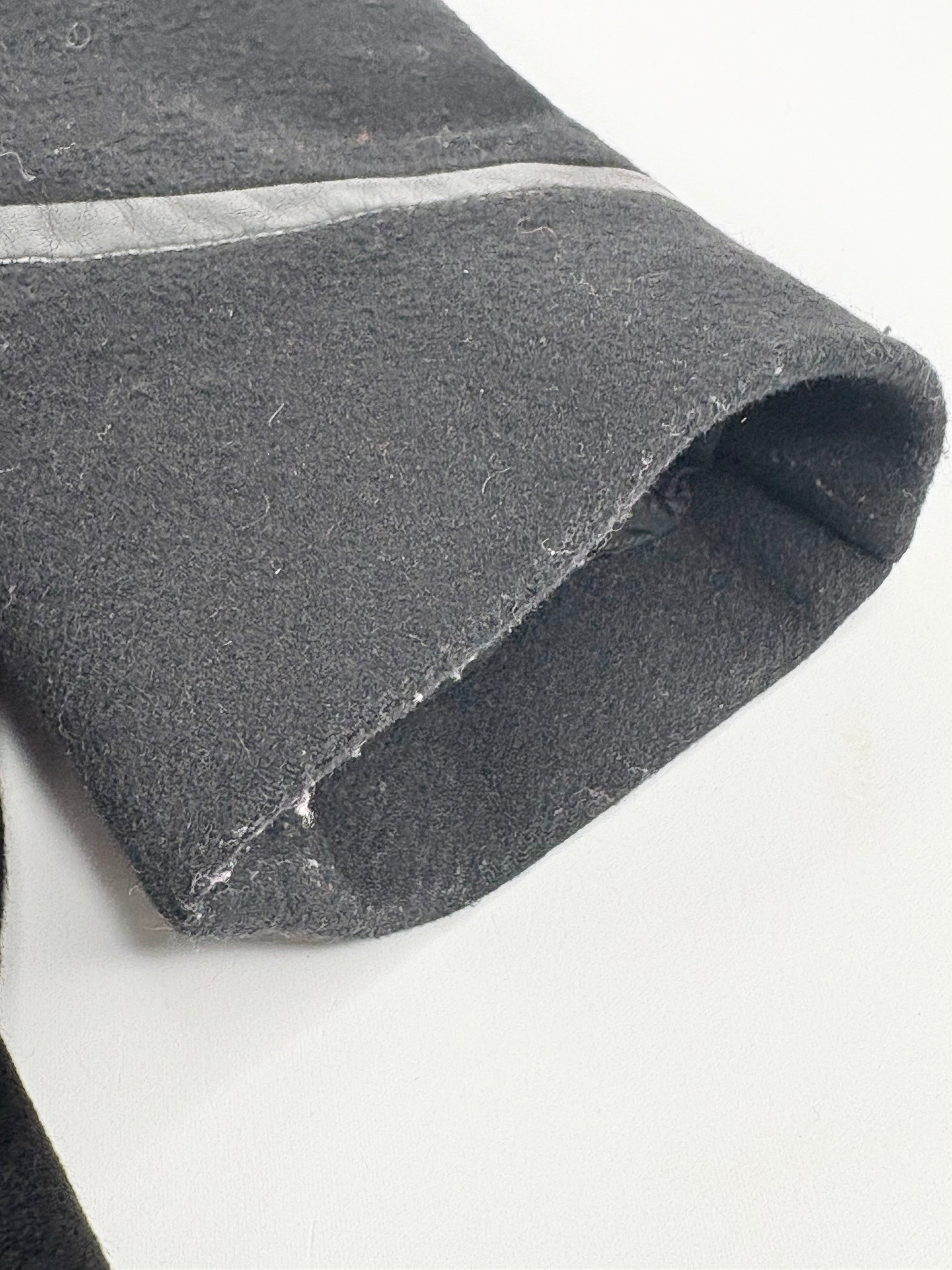 Cosy and snug, but with a bit of style about it thanks to the faux-leather lines strewn across the coat. Minor puckering and piling is pictured, however overall the condition is excellent.