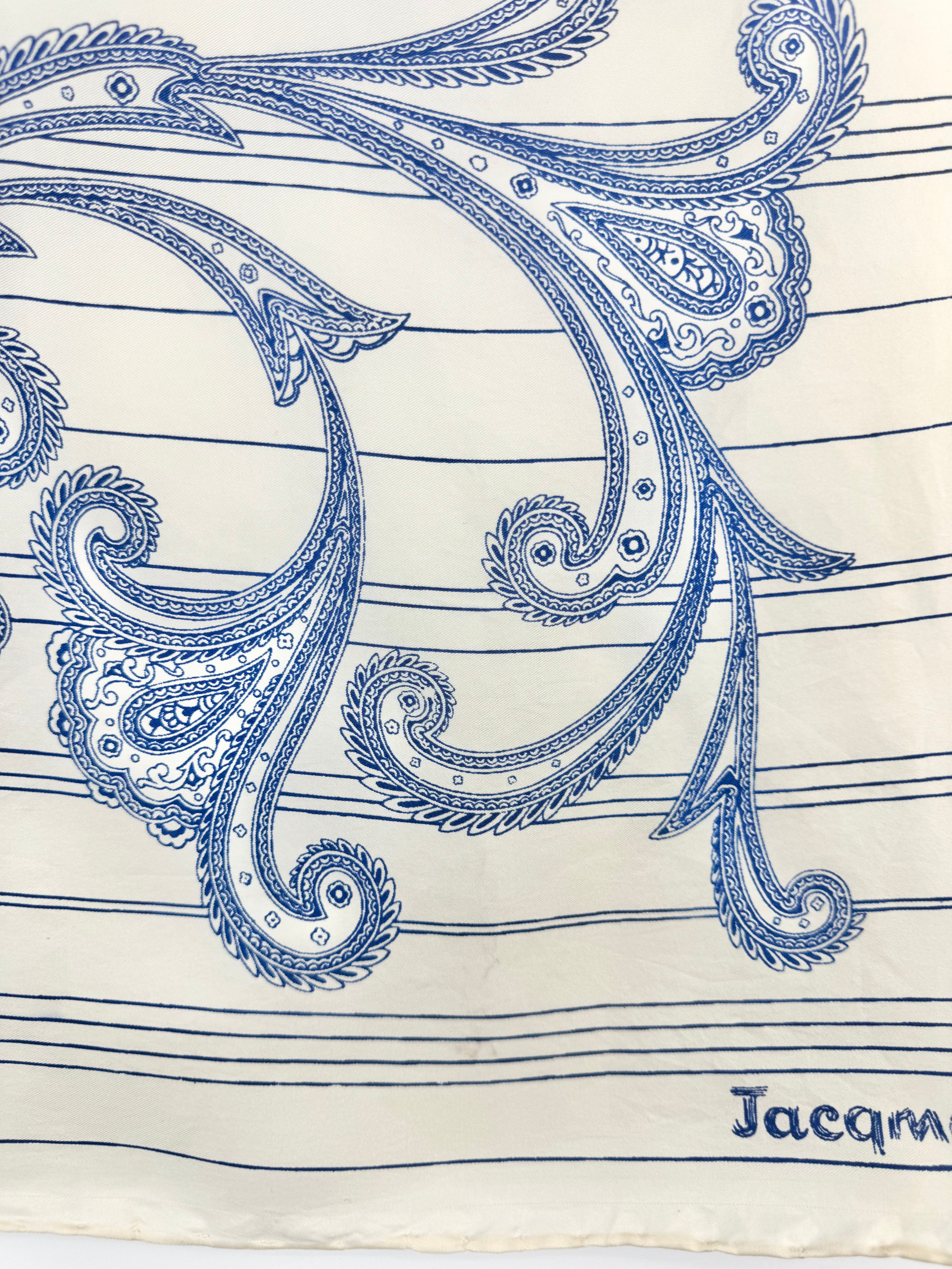 Jacqmar Cream & Blue Paisley Silk Scarf