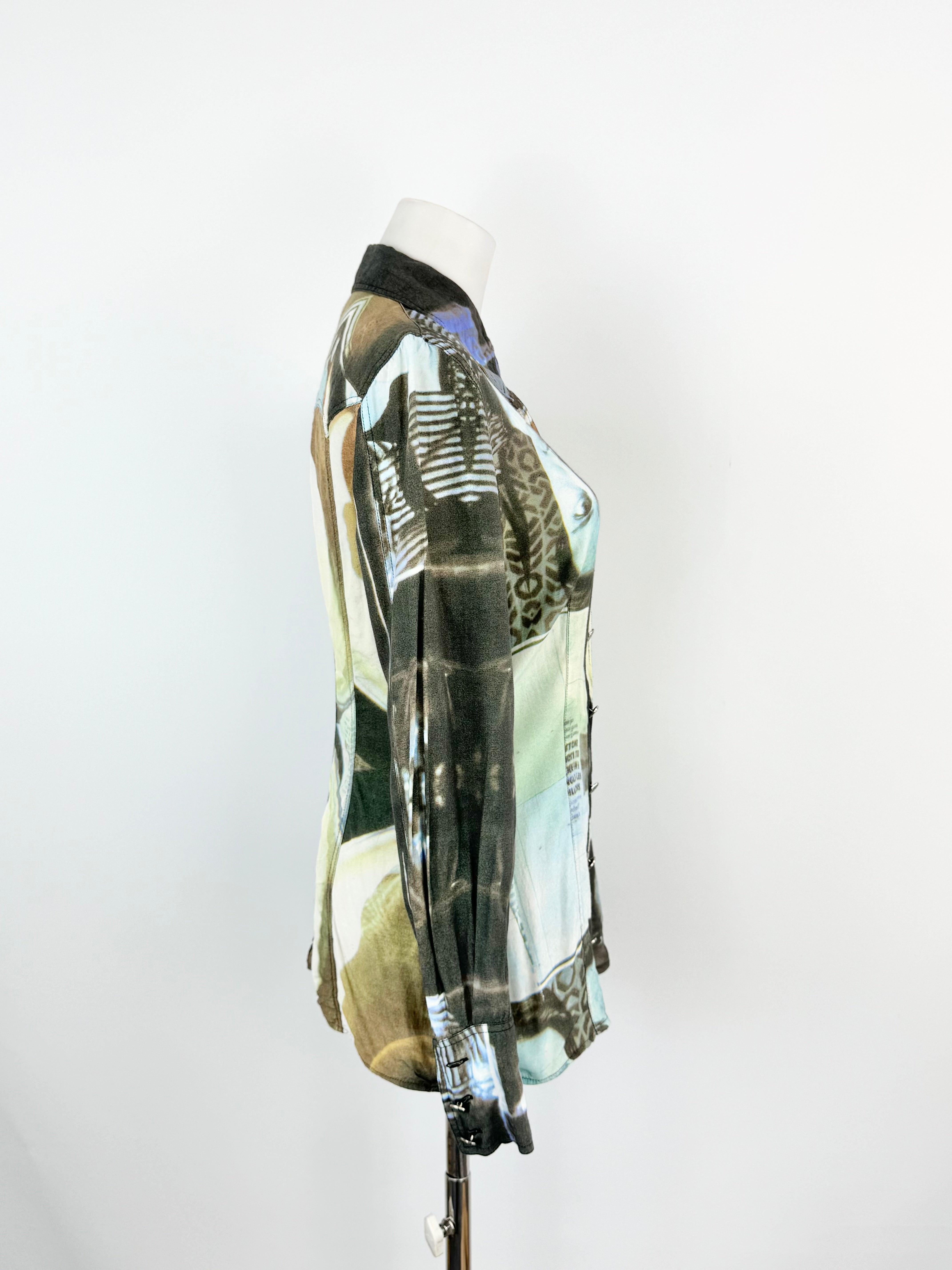 Jeans by Christian Lacroix Blue Fitted Photograph Shirt - AU6/8