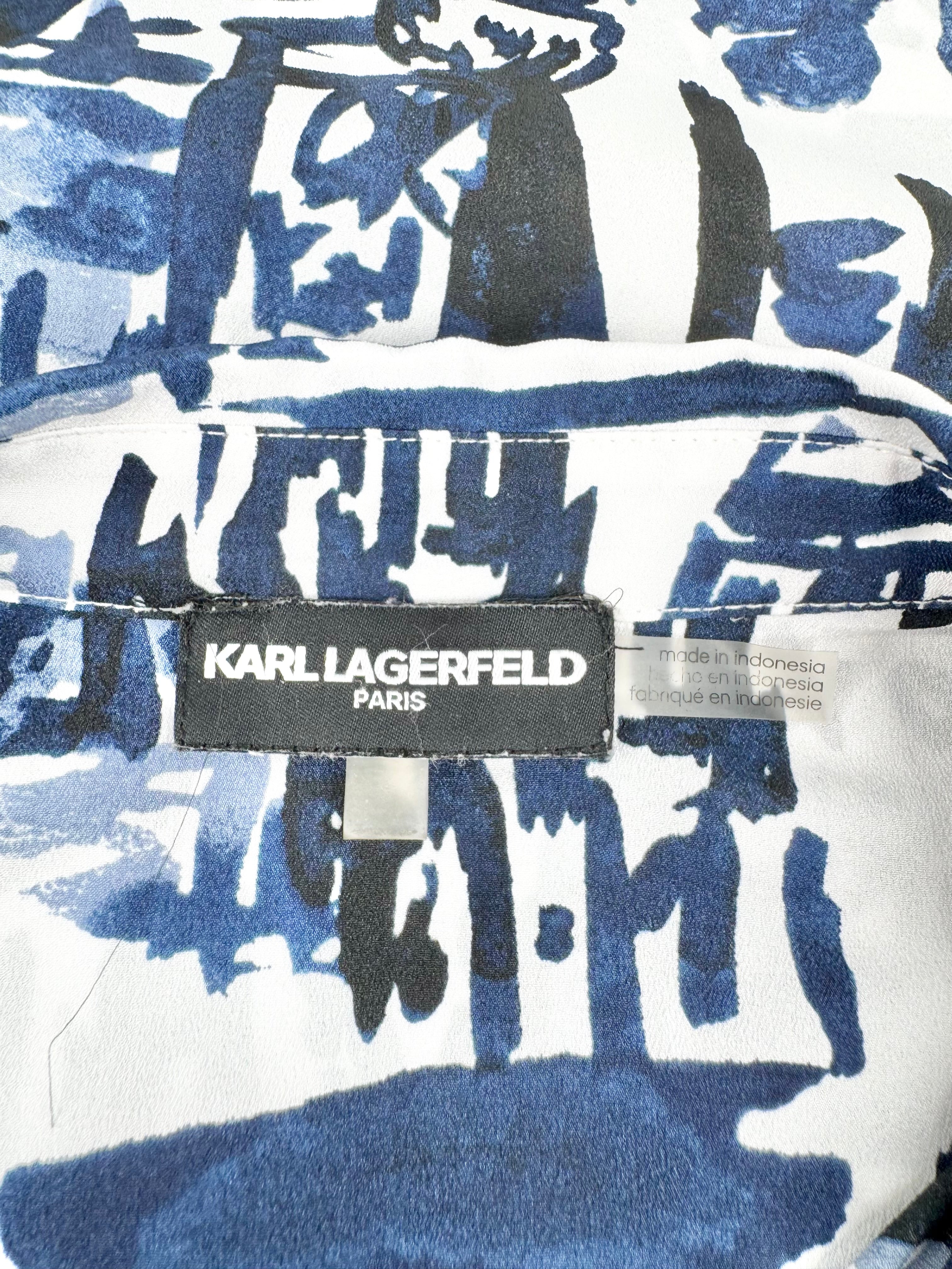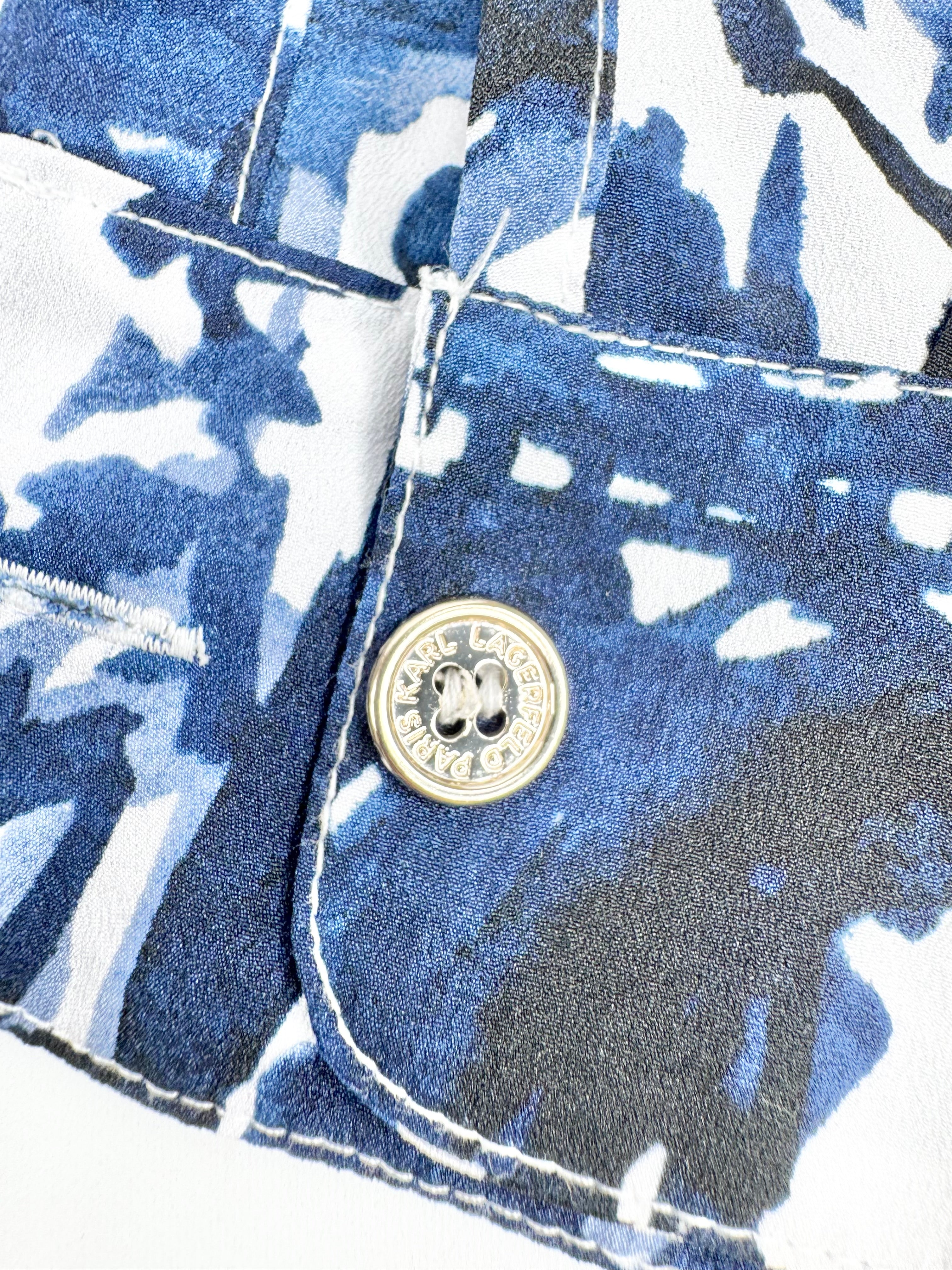 Karl Lagerfeld Blue & White Watercolour Illustrated Blouse - AU10/12