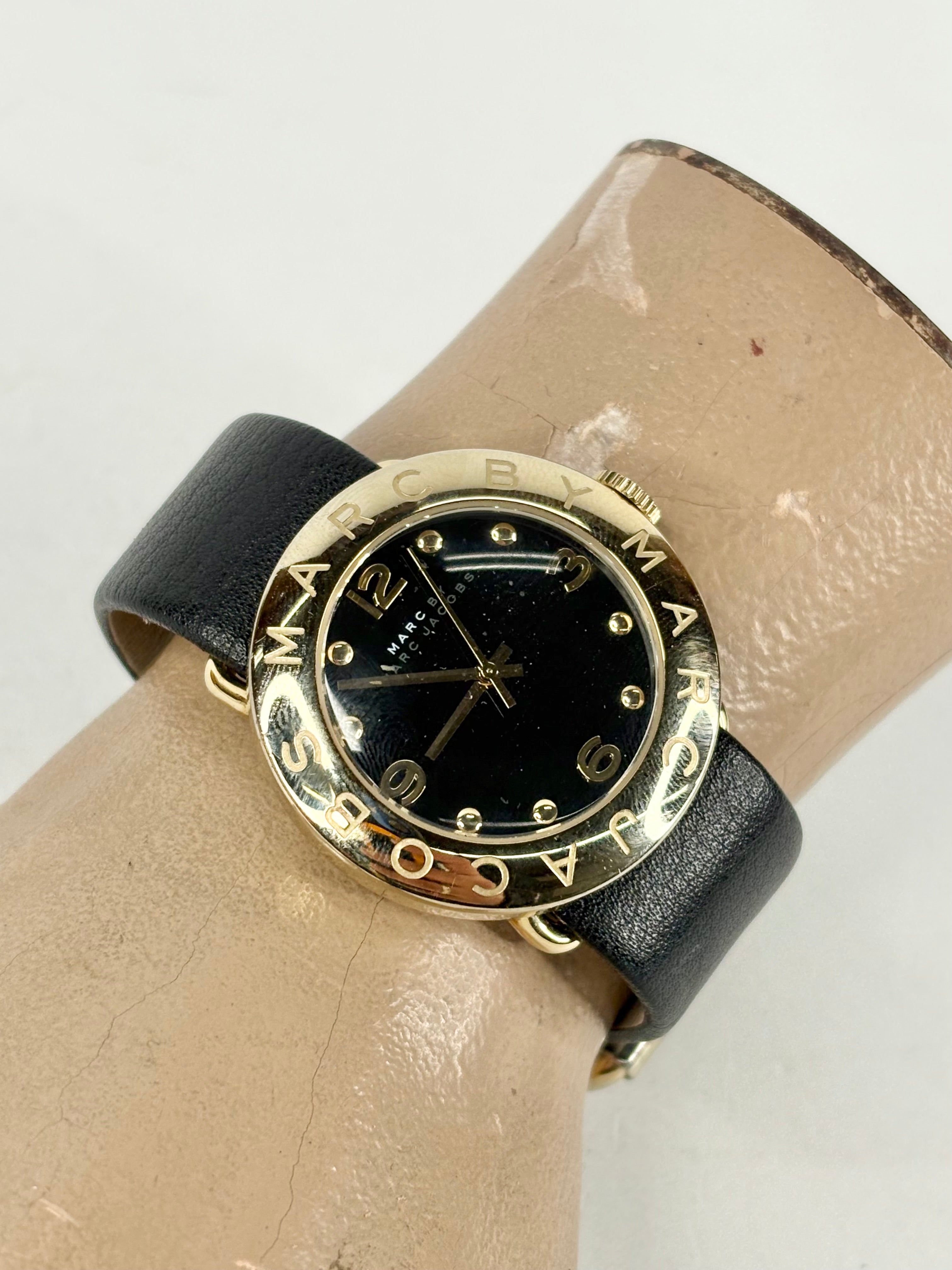Marc by Marc Jacobs Amy Black Leather & Yellow Gold Watch