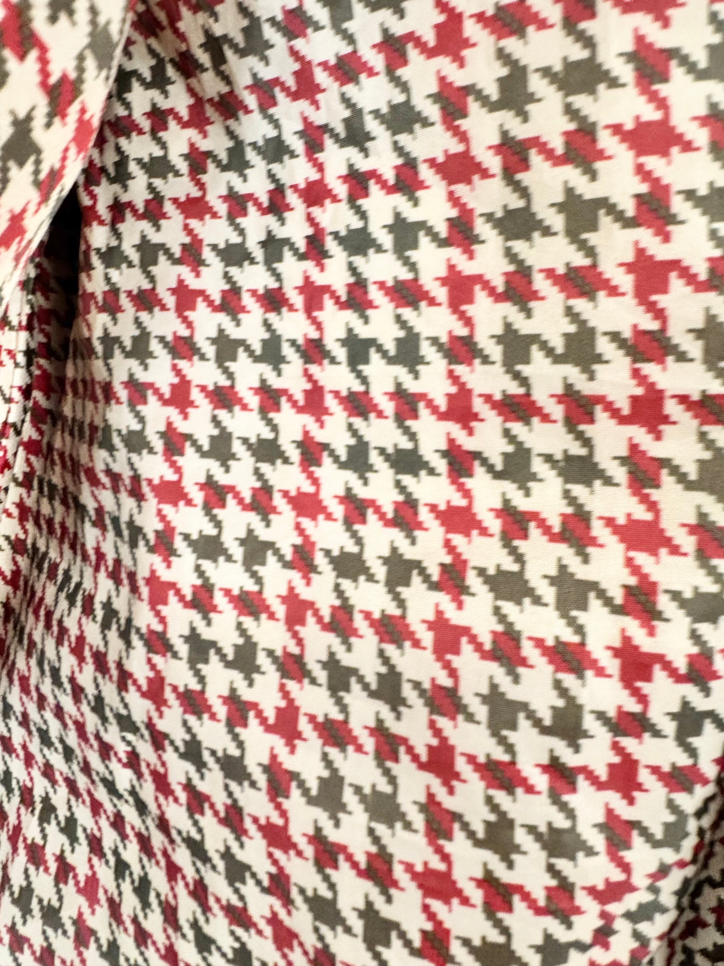 An Australian favourite, this handsome button down jacket is in a deep bark brown shade with hounds tooth lining and pockets on the breast. There is some slight wear to overall.
