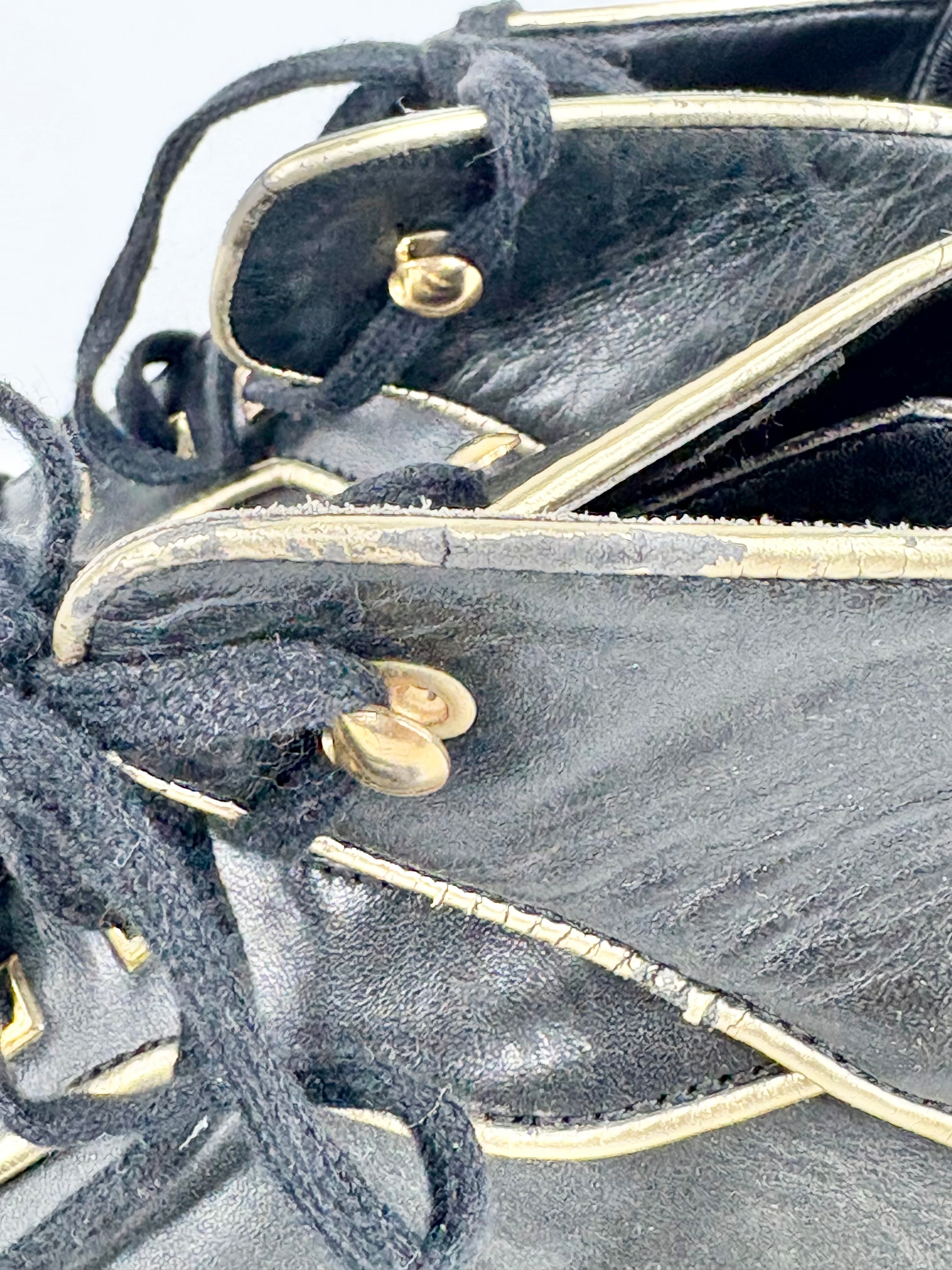 Black and gold is just an iconic colour combination full-stop, let alone on these Versace Collection sneakers here. Pictured with wear throughout to the gold trims, with the colour peeling off and some sole wear. Still in overall very good-to-excellent condition.