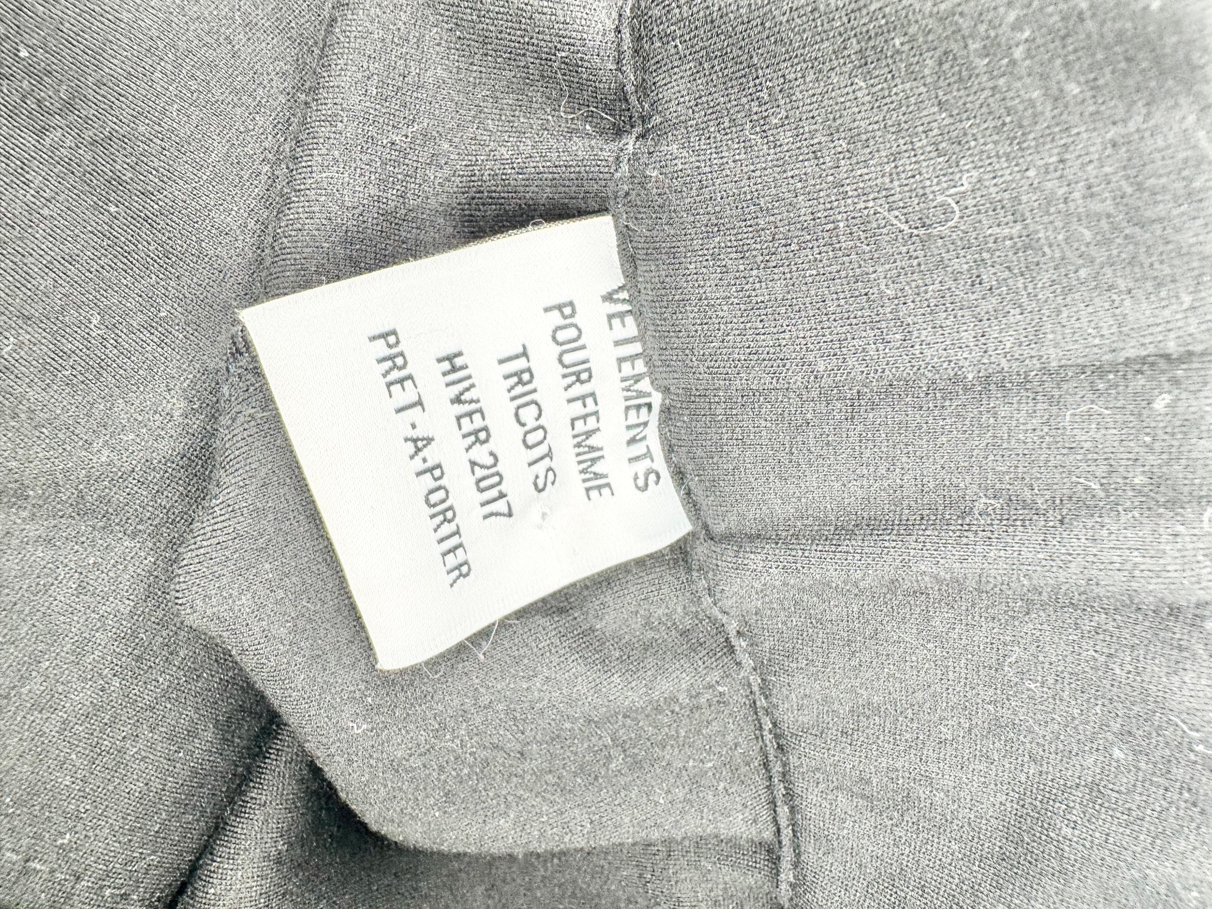 A pair of black drawstring slacks with a raw fringe down the sides. In good condition.
