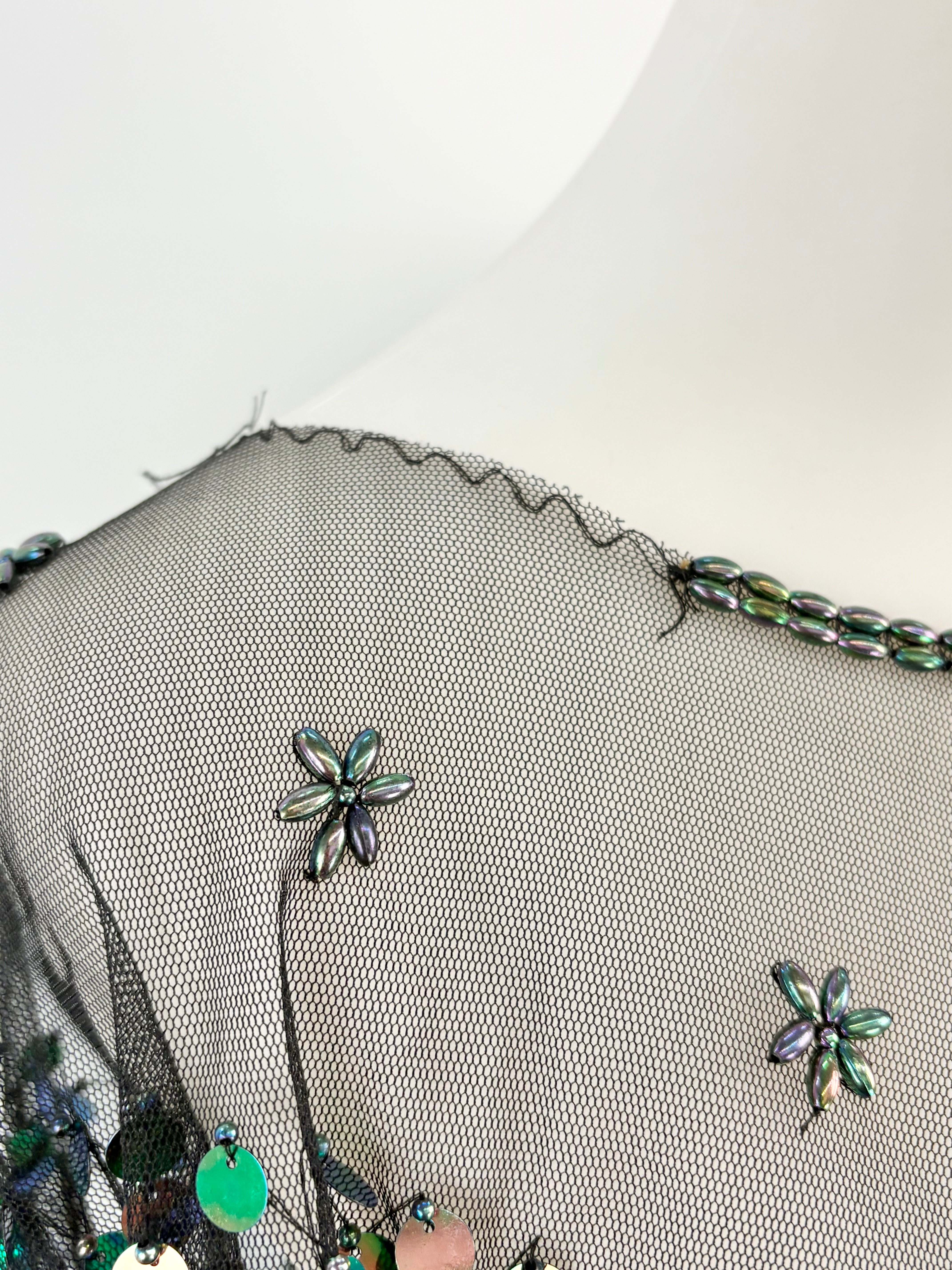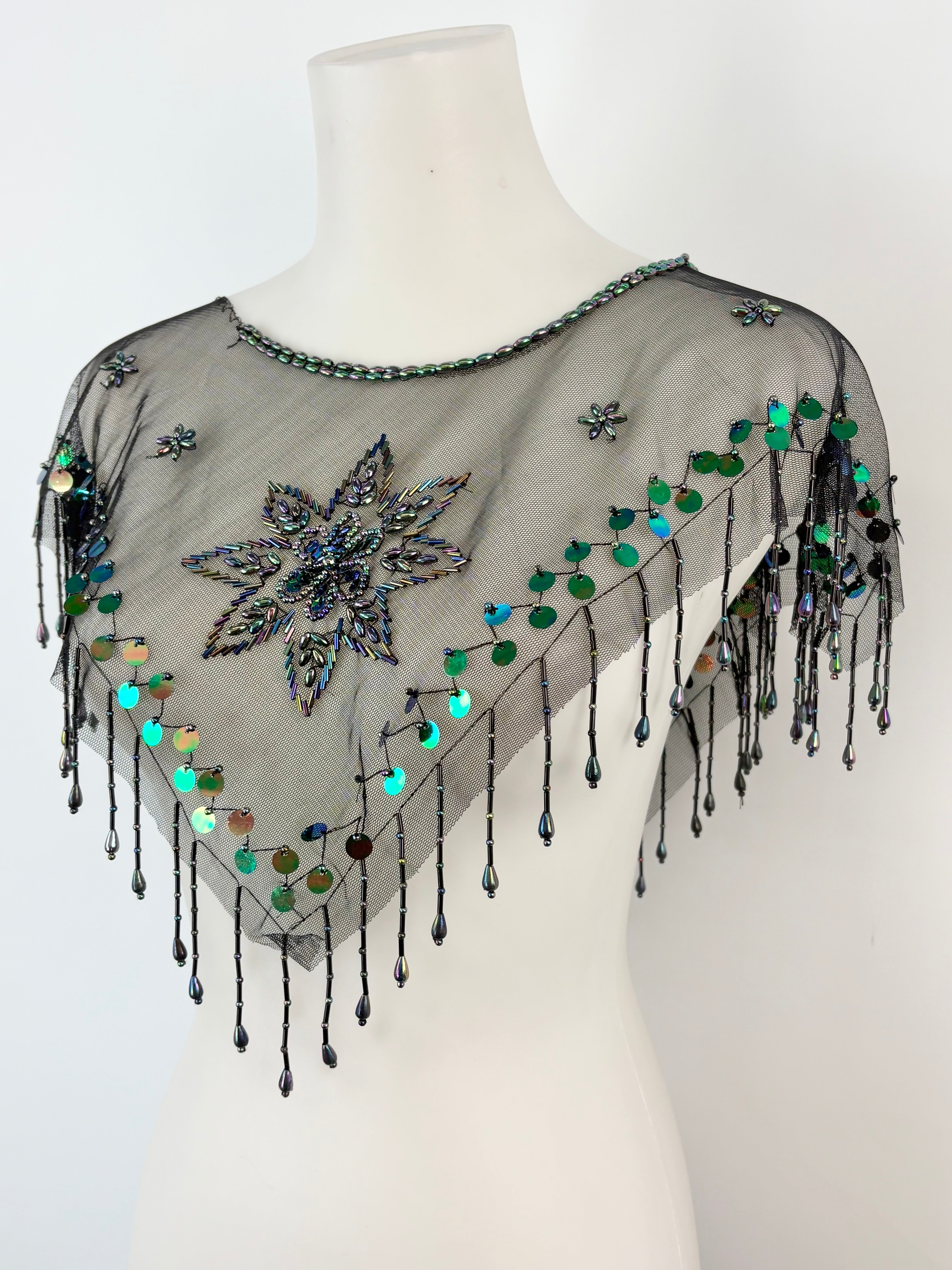 Vicsin Australia Vintage Black Mesh Embellished Mini Cape