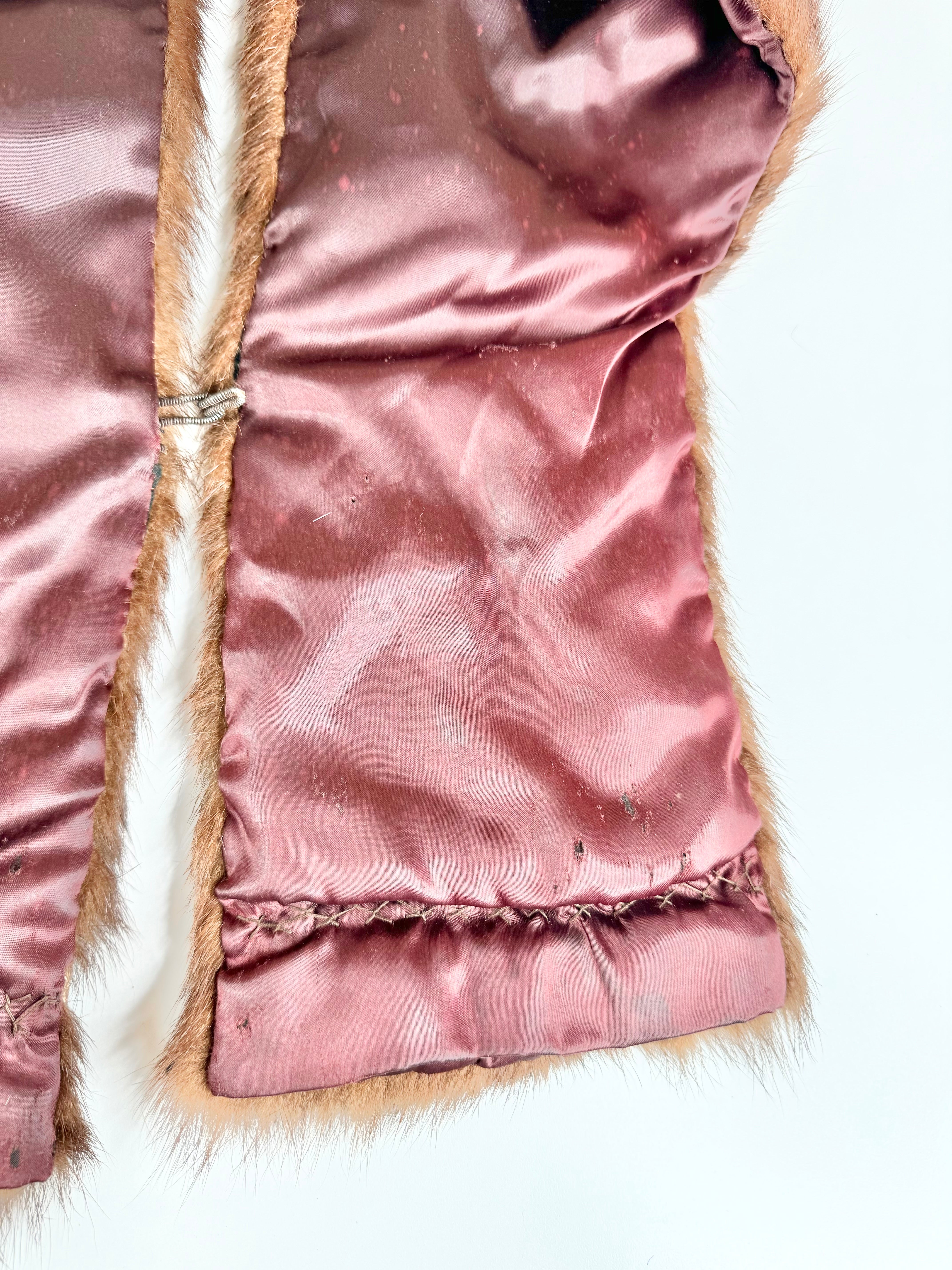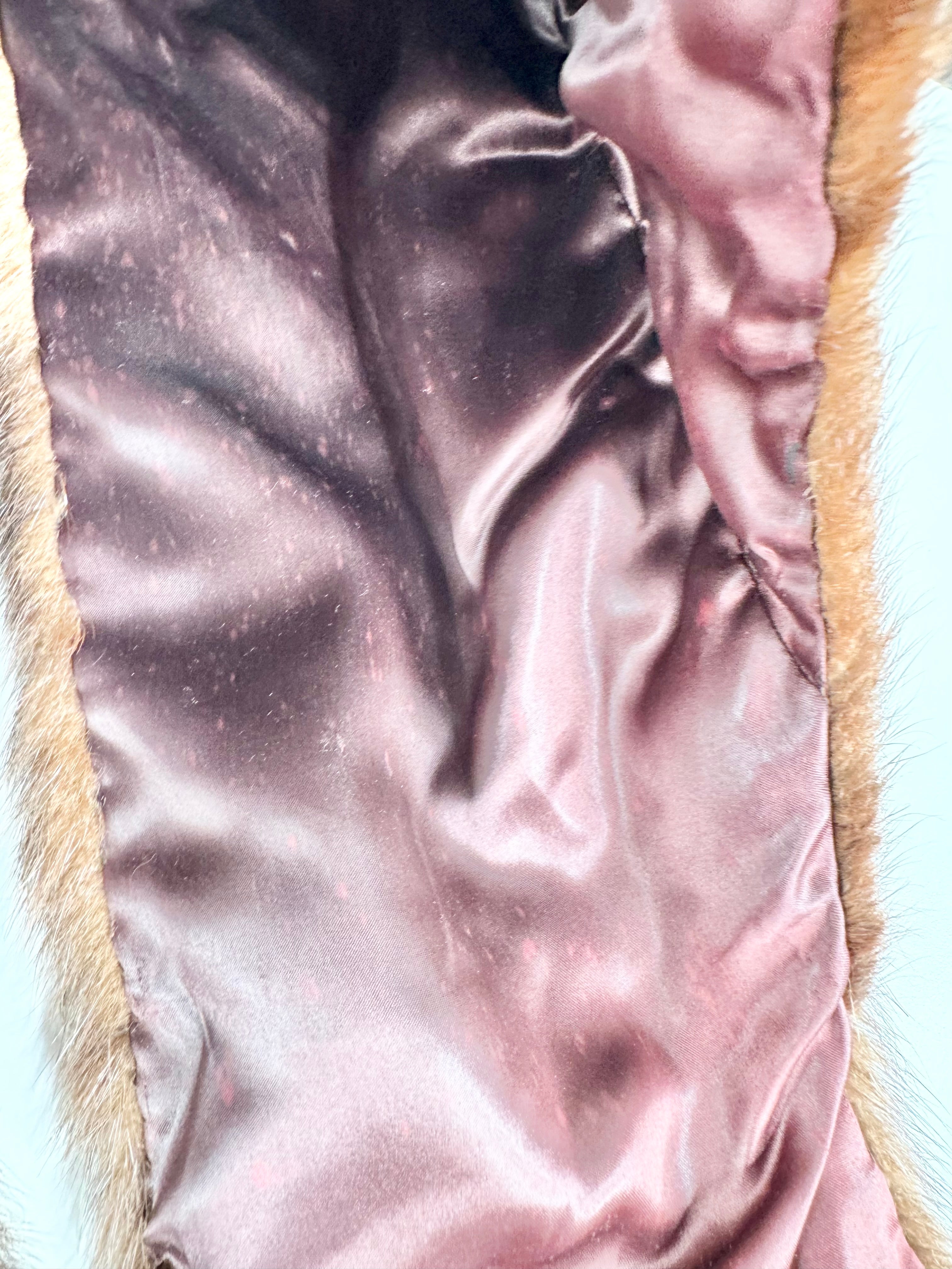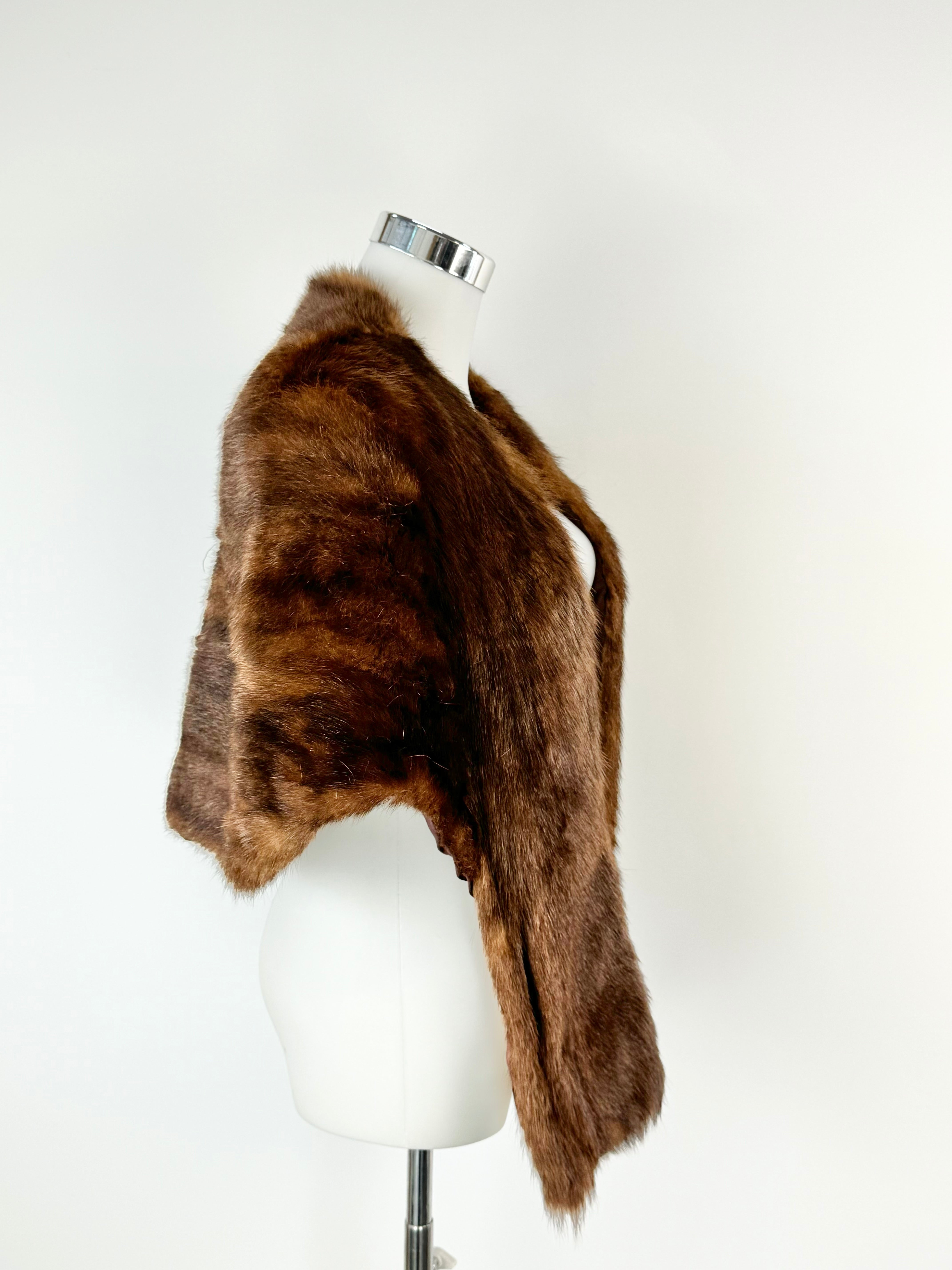 A thick, vintage fur stole. Composed of a brown fur, this item features acetate feeling lining beneath. It is in vintage condition, so please check photographs prior to purchase.