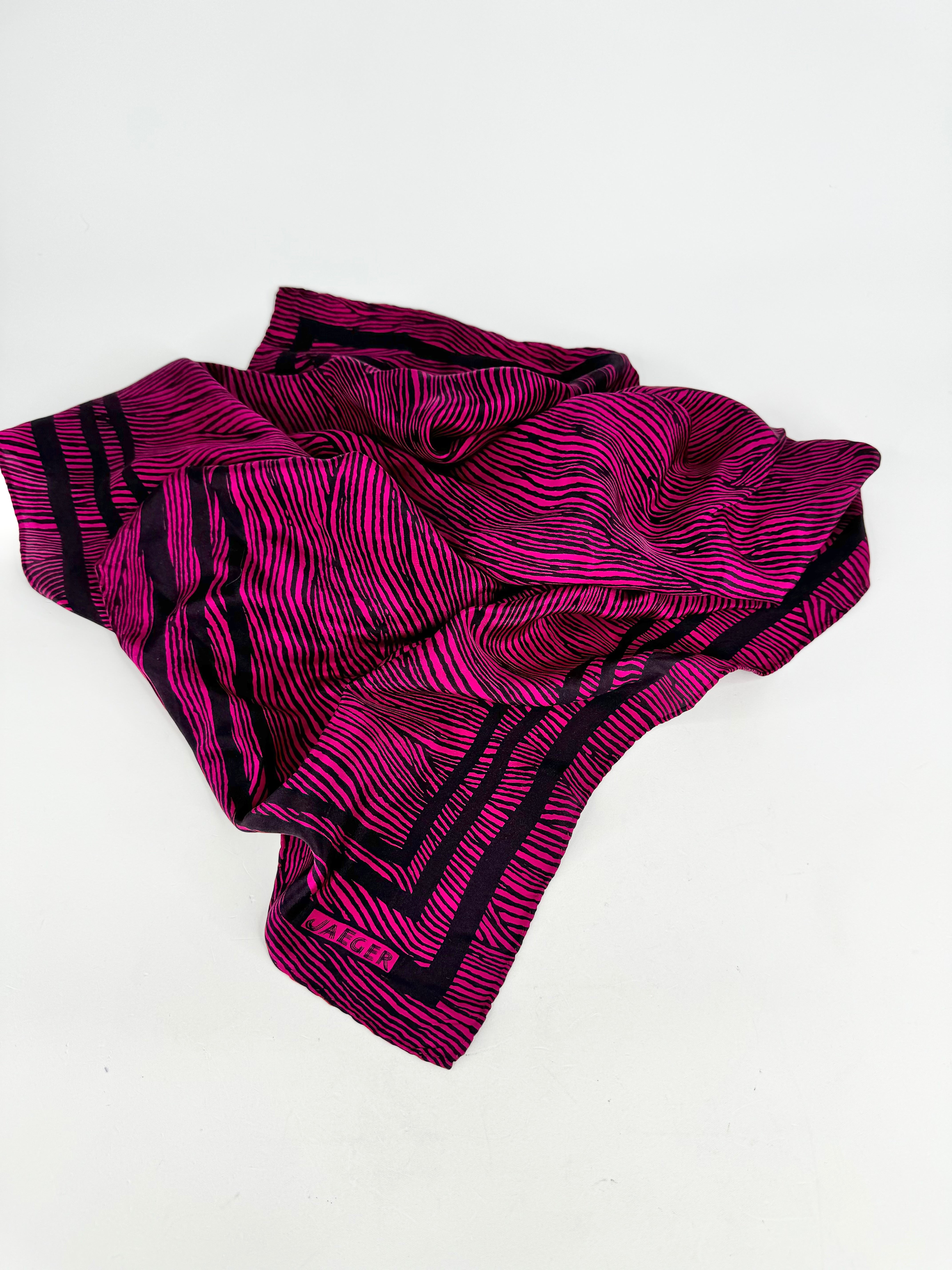 Vintage Dark Pink & Black Striped Silk Scarf