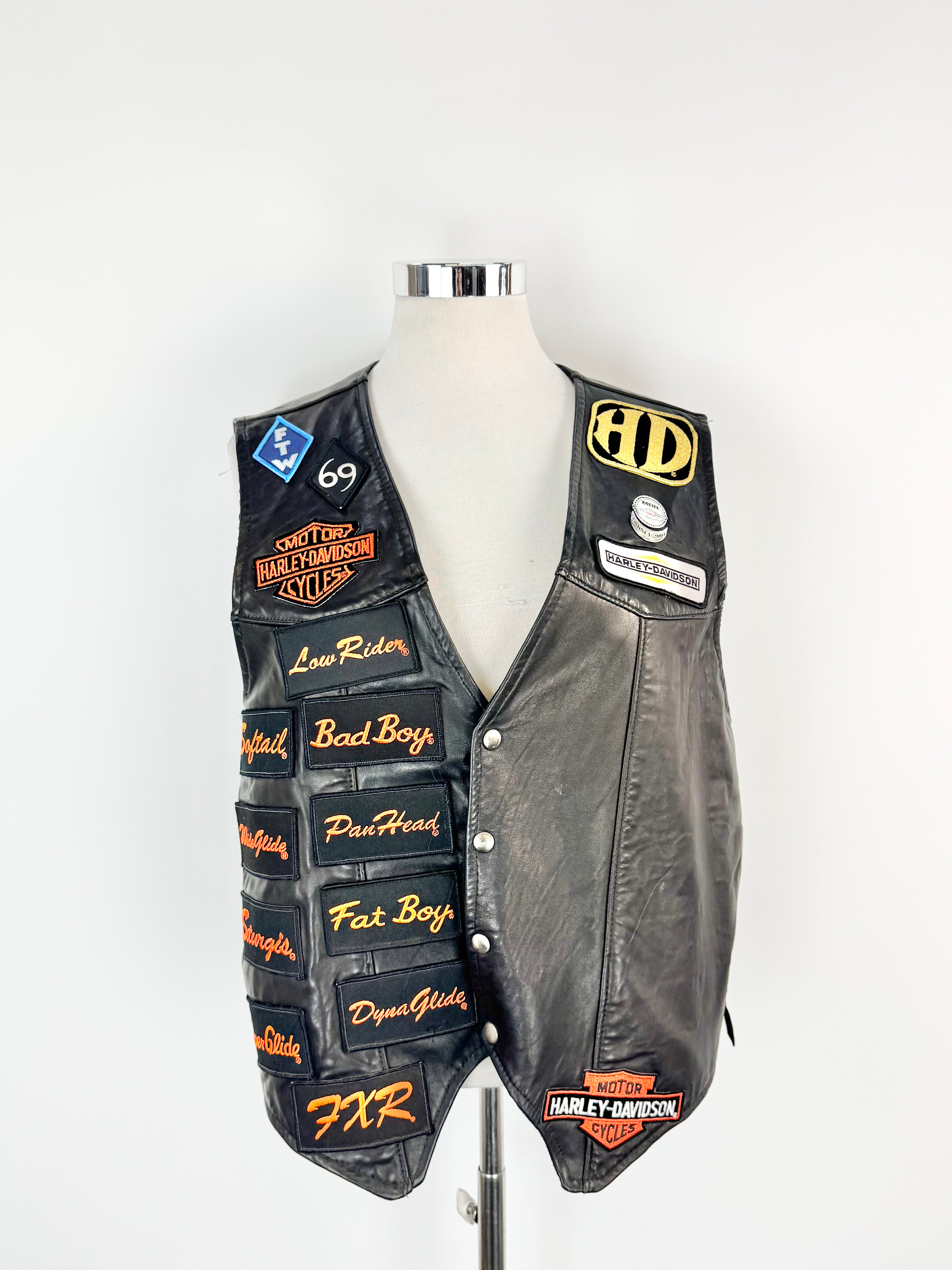 Vintage Harley Davidson Black Leather Patched Vest - XXL