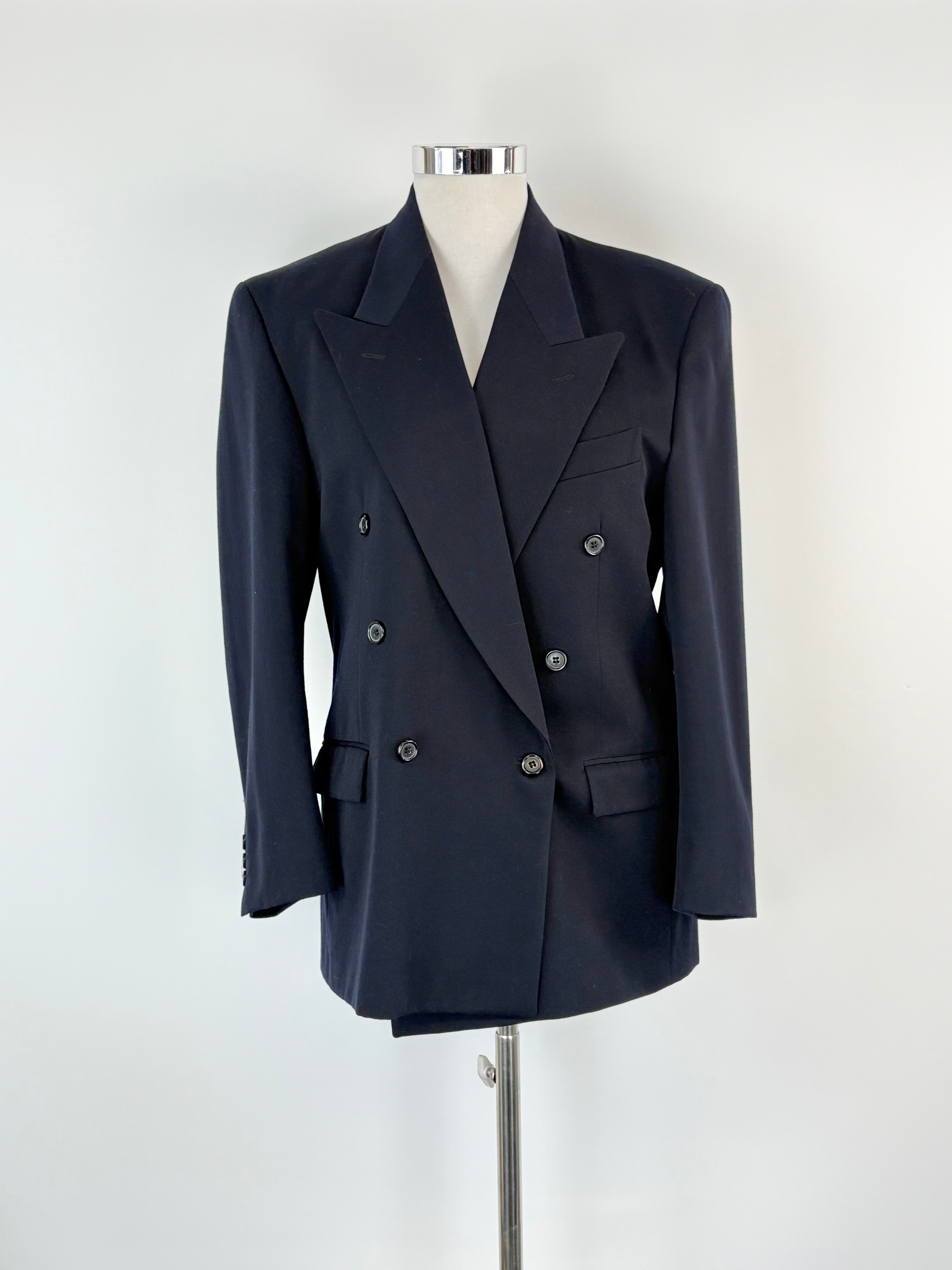 Vintage Pierre Cardin Navy Blue Double-Breasted 'Venice' Wool Blazer - XL