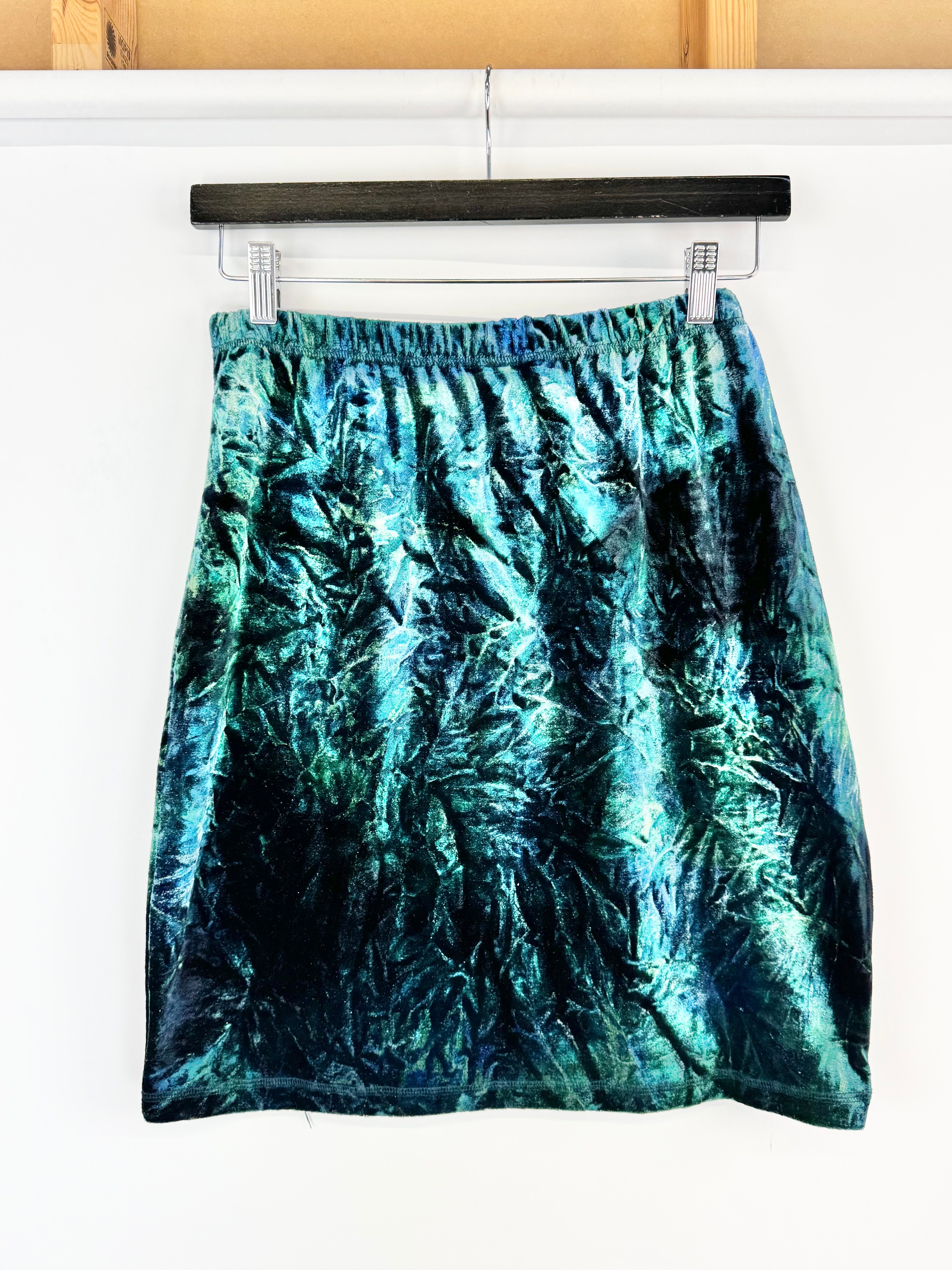Vintage Teal Velvet Mini Skirt - AU8/10