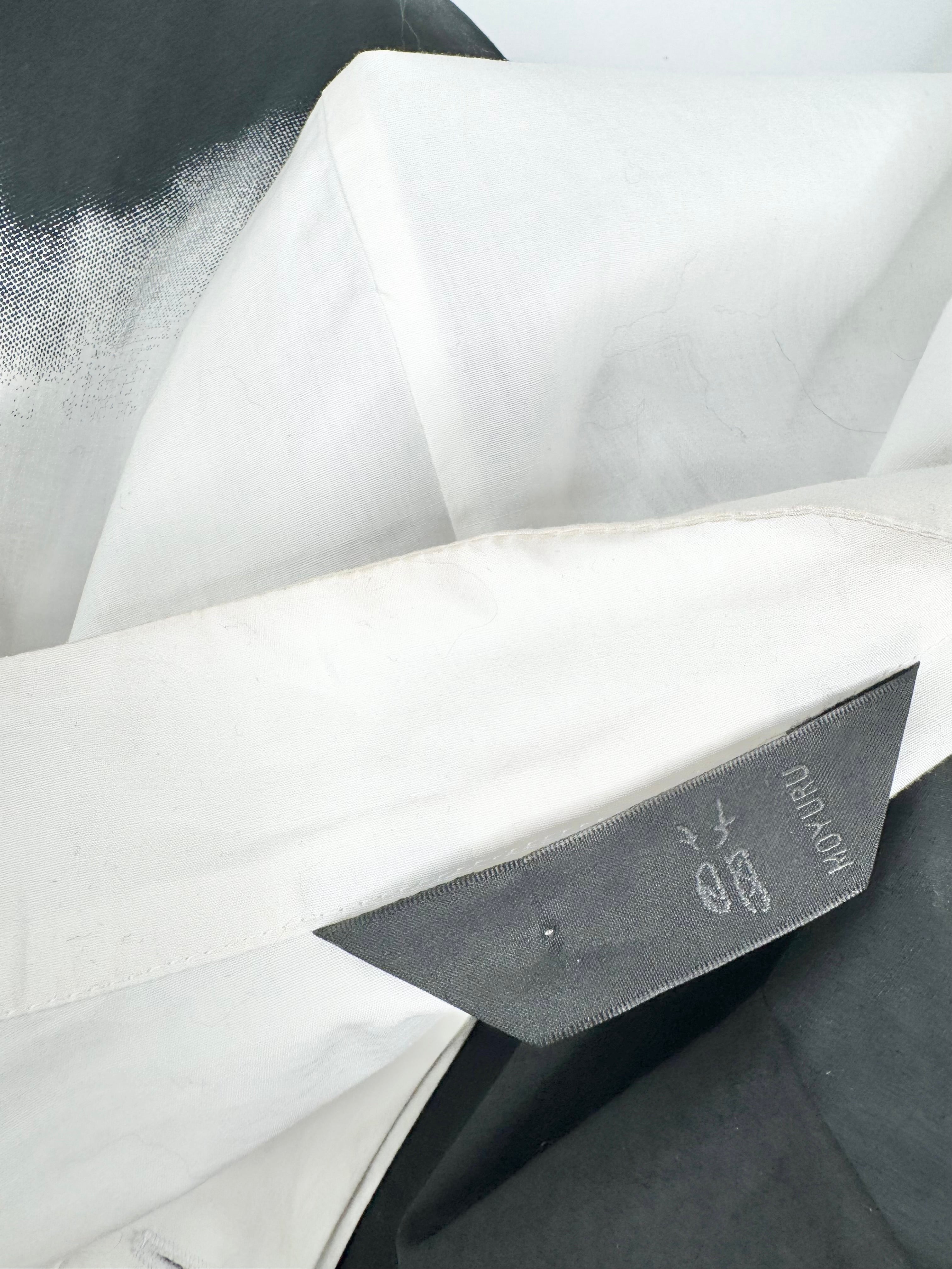 A mysterious looking tunic like garment with long sleeves, a high neckline and a dip dye pattern - the shoulders are a cloudy white whilst the rest of the garment is in great condition.