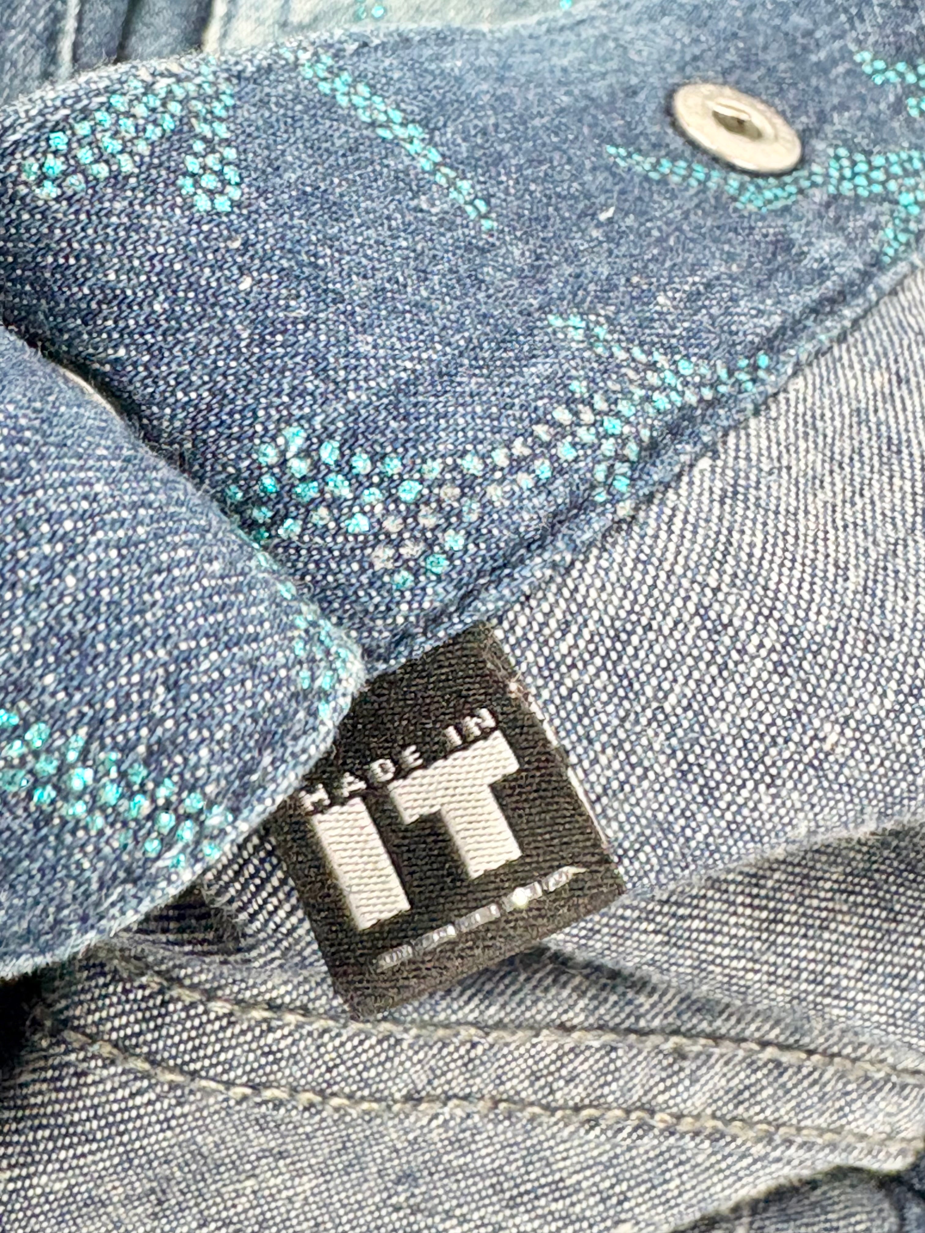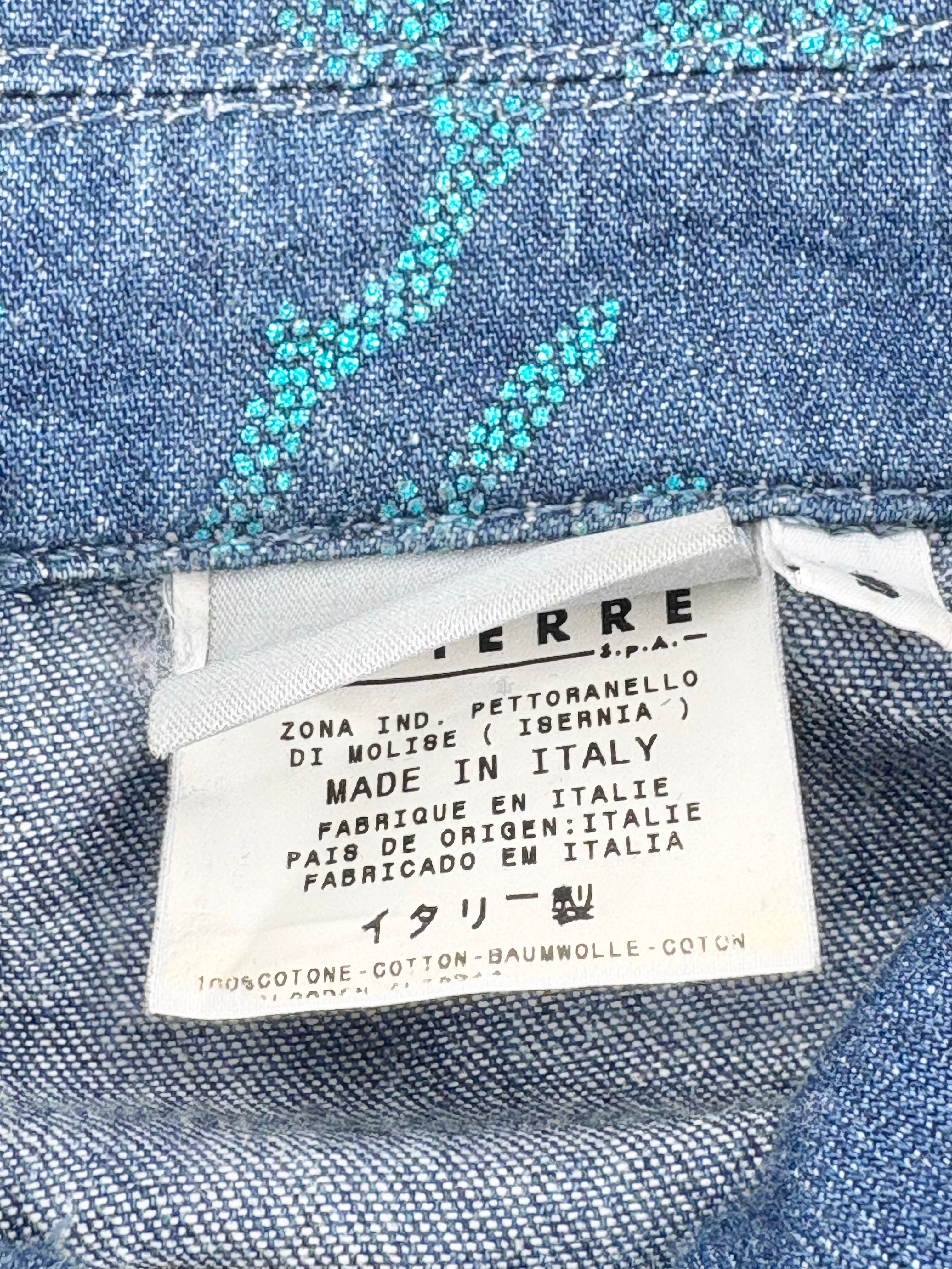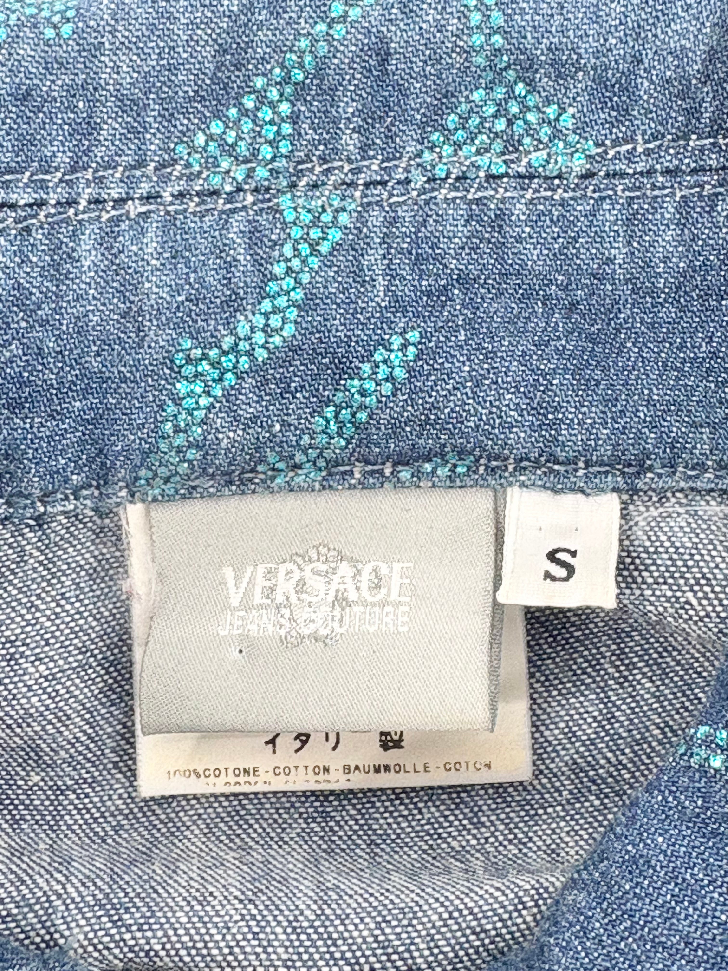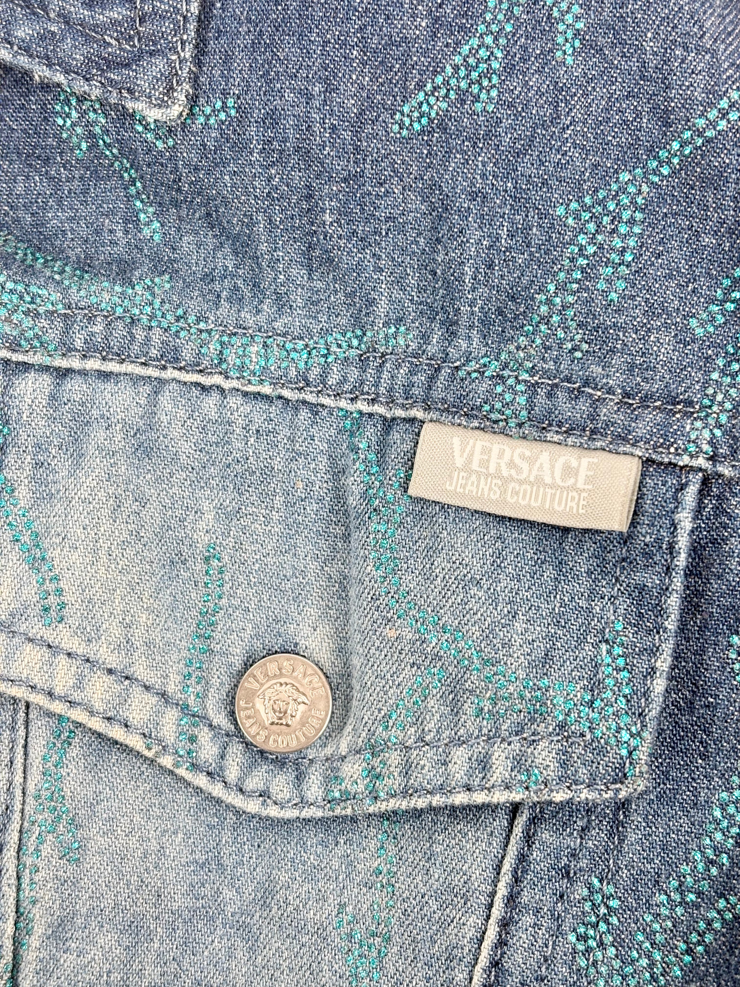 Y2K Versace Jeans Couture Washed Indigo Glittery Denim Jacket - AU8